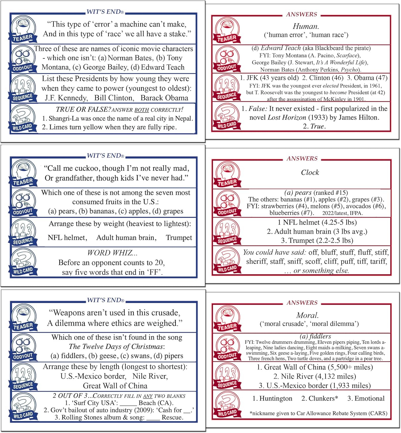 - All categories are packed with a mix of jaw-dropping history, mind-boggling science, expansive geography, pop culture mysteries, current affairs conundrums, and tricky riddles. Each question card will keep you guessing what you'll get next.