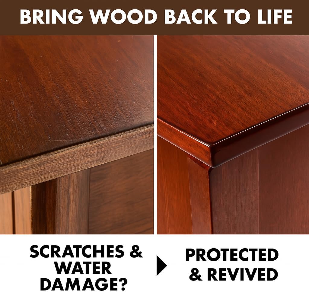 - Restores Like New – In Minutes: Revives scratched or dull wood with a crystal-clear finish that enhances grain and color without discoloration.