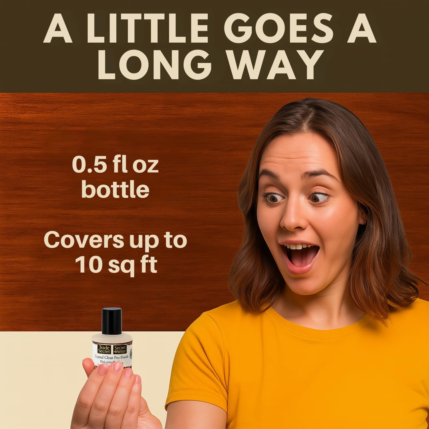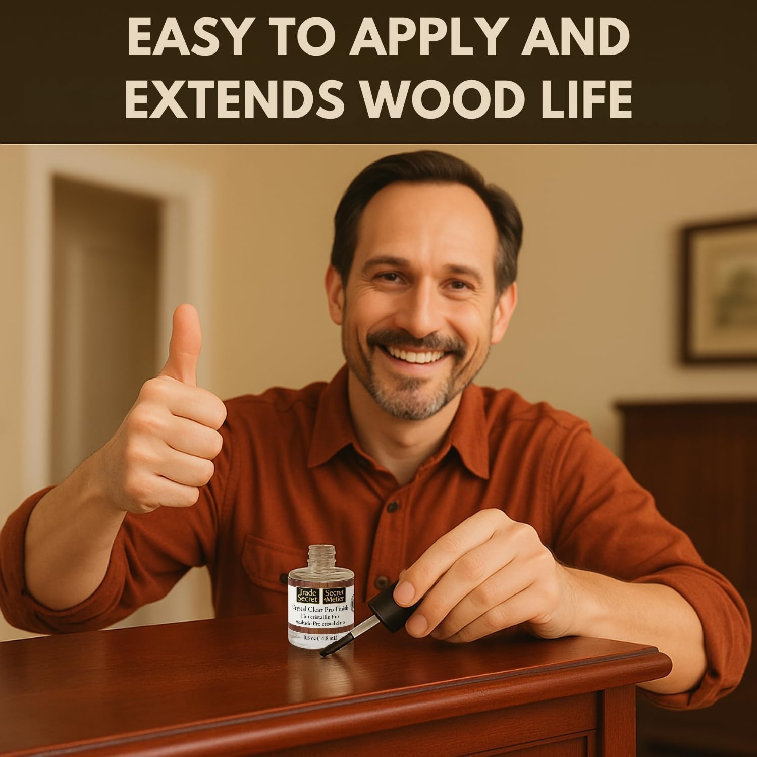 Trade Secret Crystal Clear Pro Finish, Furniture Repair Touch Up Coat, Clear Polyurethane Scratch and Water Protection, Wood Varnish and Polish, Paint and Stain Compatible, 0.5 oz (14.8 ml)