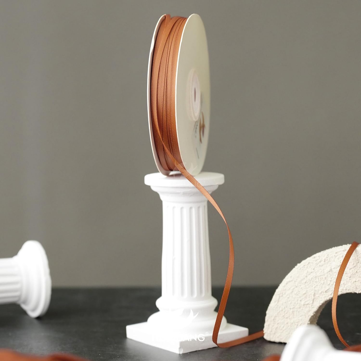 HUIHUANG 1/8" Terracotta Satin Ribbon Small Thin Ribbon for Crafts Gift Wrapping DIY Bows Decoration Sewing and Invitation Card Hanging Tags-100 Yards