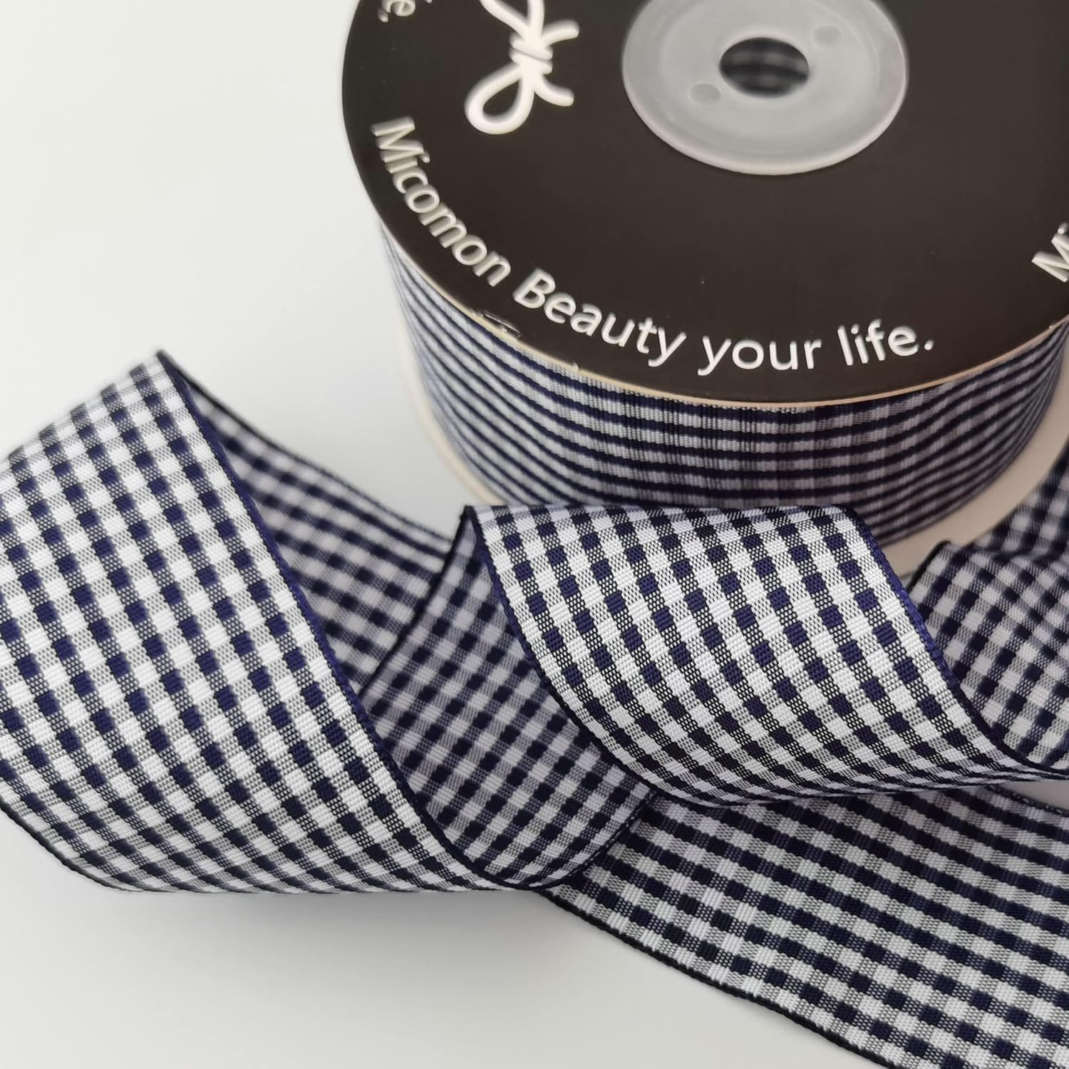 1.5 Inch Blue and White Woven Edge 100% Polyester Gingham Ribbon 25 Yards Each Roll (1-1/2", Blue)