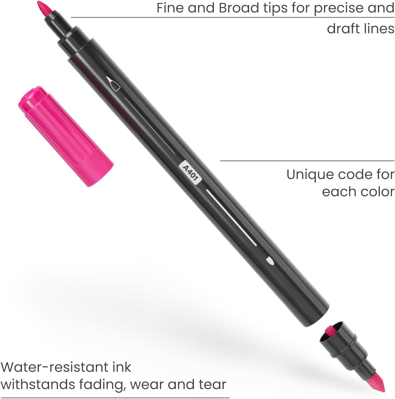- Dual-Tip for Precision and Coverage. Each fabric marker features a fine tip and ultra-fine tip—designed for both outlining and adding detail on clothing, canvas bags, denim, and other materials.