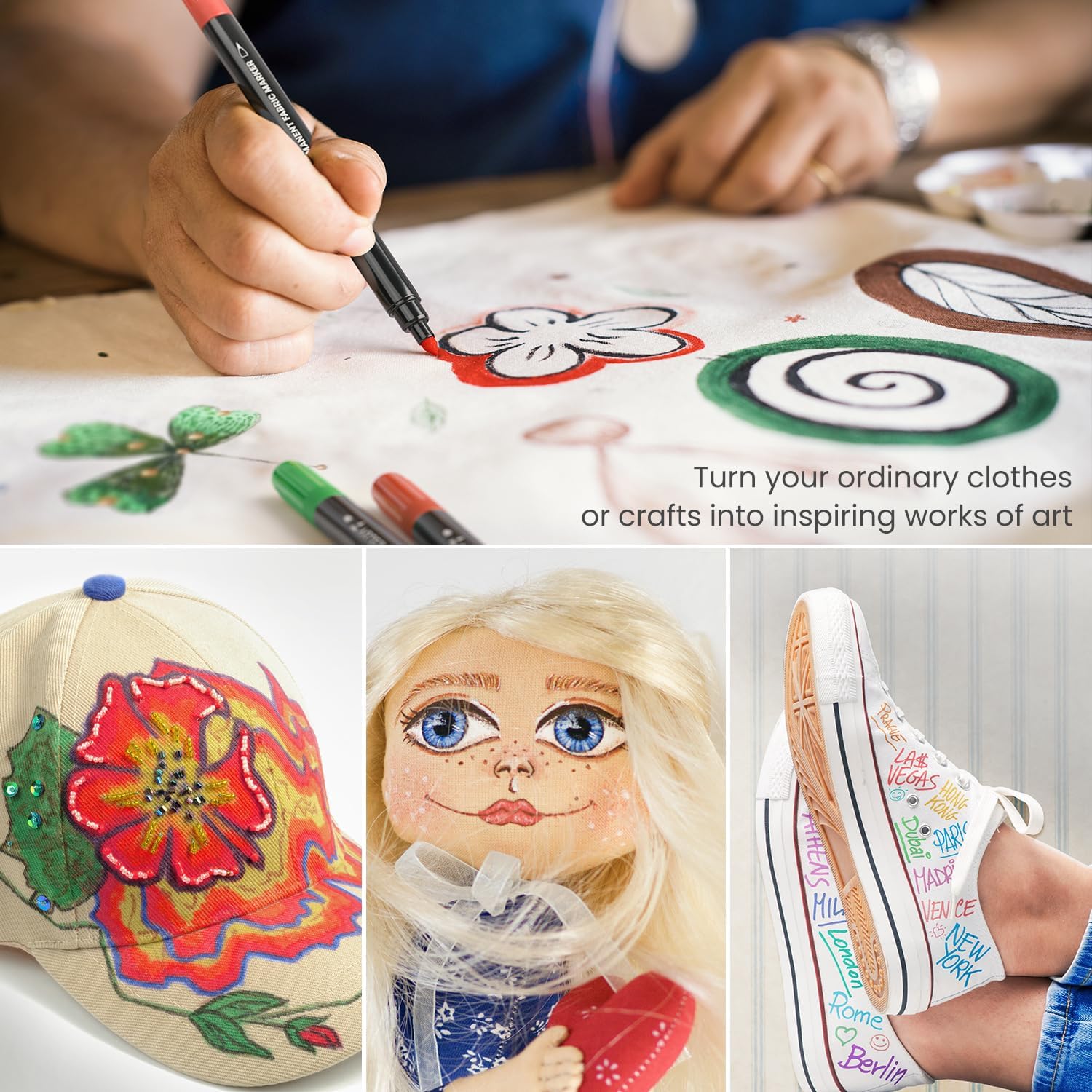 - Washes Clean While Staying Vibrant. Markers contain permanent fabric ink that holds up after multiple washes—let your design fully dry, then wash in cold water with a mild detergent to preserve color.