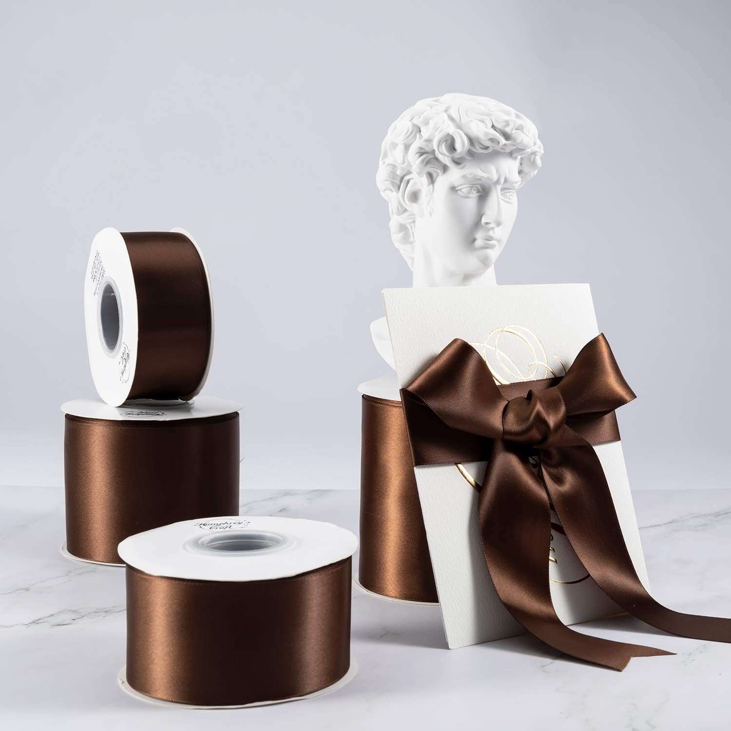 Humphrey's Craft 1-1/2 Inch Brown Double Faced Satin Ribbon - 25 Yards Variety of Color for Crafts Gift Wrapping DIY Bows Bouquet Decoration Sewing Christmas Tree Wedding and Invitation Card.