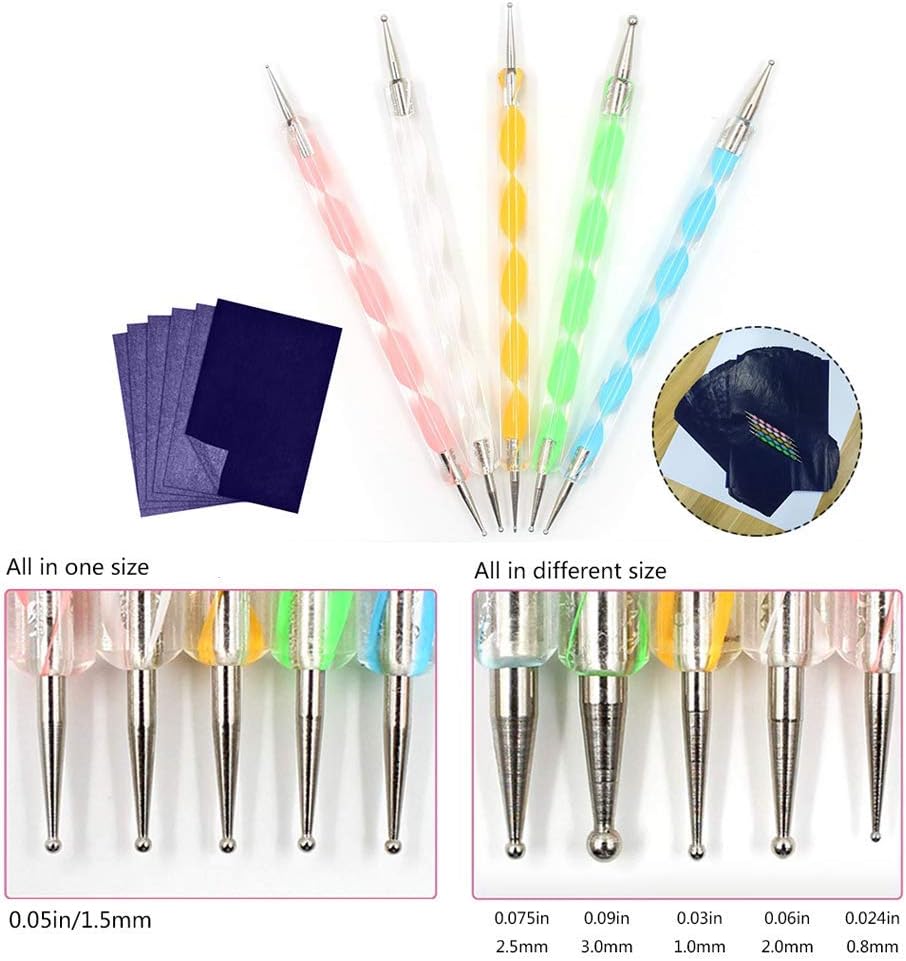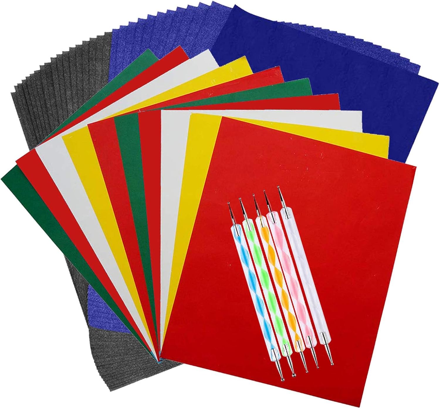- Package Includes:Art Transfer Paper,Come with 30sheets black,30sheets blue,10sheets red,10sheets yellow,10sheets green Carbon Transfer Paper,10sheets translucent Tracing Paper29.7 x 21 cm (8.3" x 11.7") and 5pcs Double-end ball Embossing Stylus in total,great for tracing pictures or frames, makes creating designs so much easier.