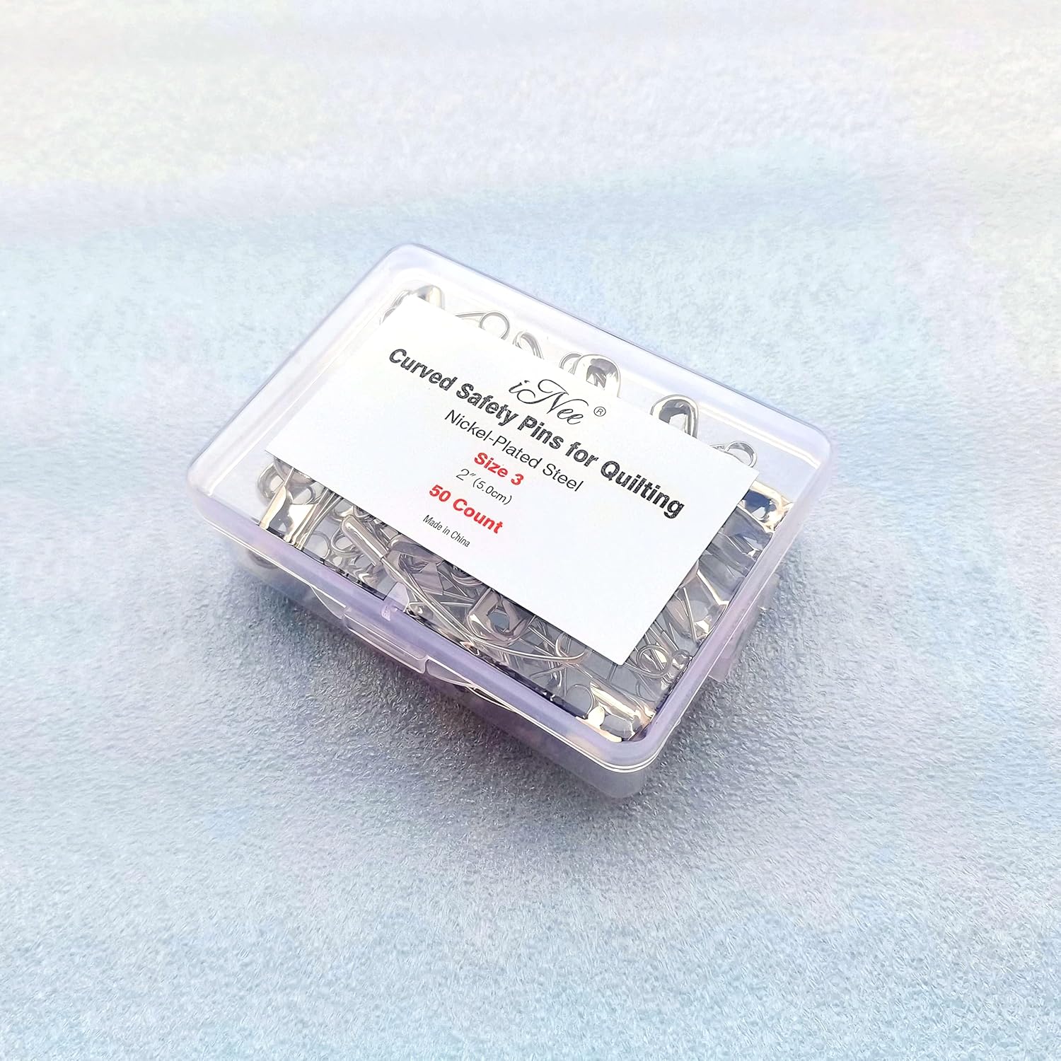 iNee Curved Safety Pins, Quilting Basting Pins, Nickel-Plated Steel, Size 3, 50 Count