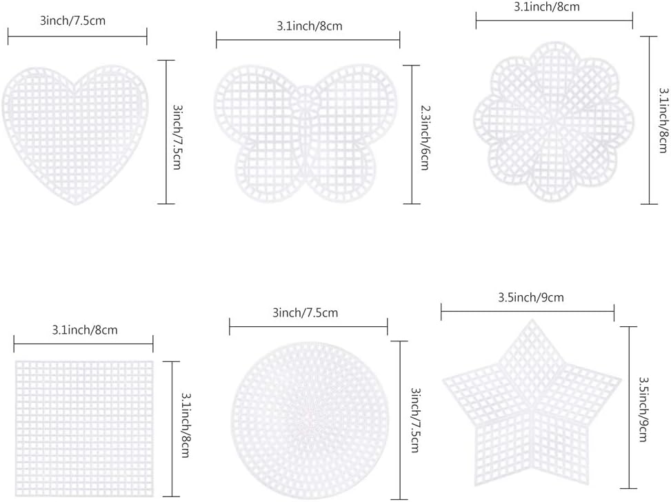 - 6 Shapes: Plastic canvas kits have 10 Pieces of each shape, including stars, squares, hearts, circles, butterfly and flower