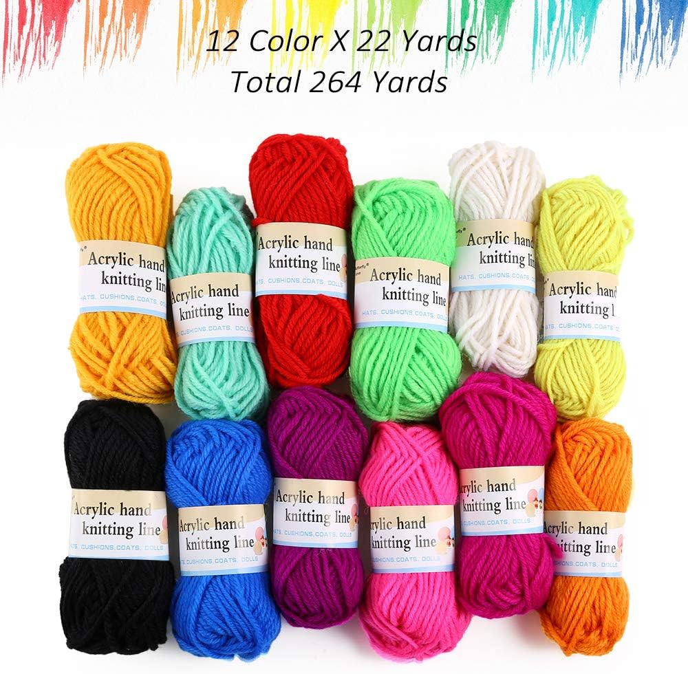 - 12 Color Acrylic Yarns: Each color is 22 Yards, enough for plastic canvas project