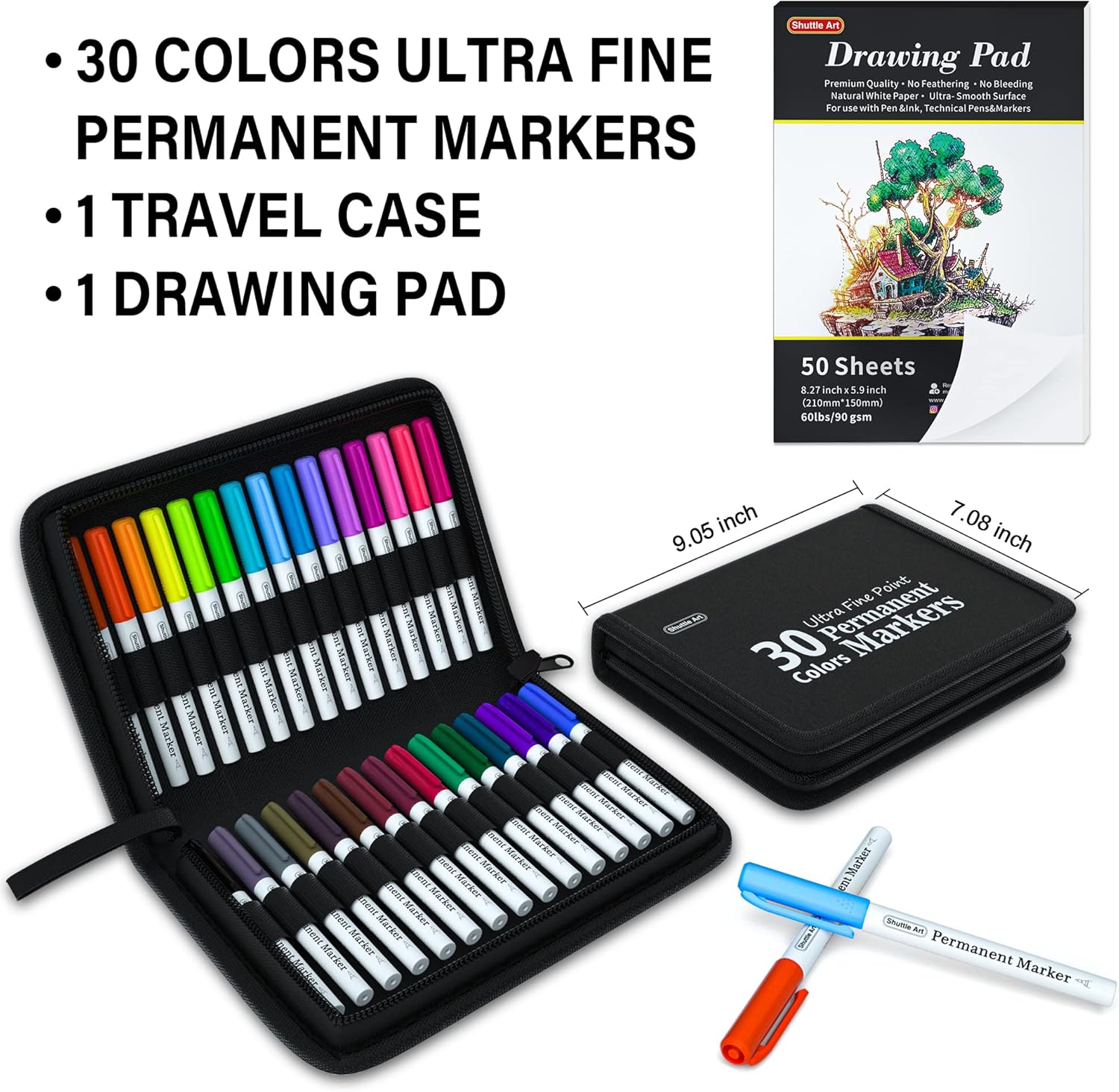 Shuttle Art Permanent Markers, 30 Assorted Colors Ultra Fine Point Permanent Marker Packed in Travel Case, Ideal Colored Markers Set for Adults Coloring Doodling on Plastic, Glass, Gift for Teens
