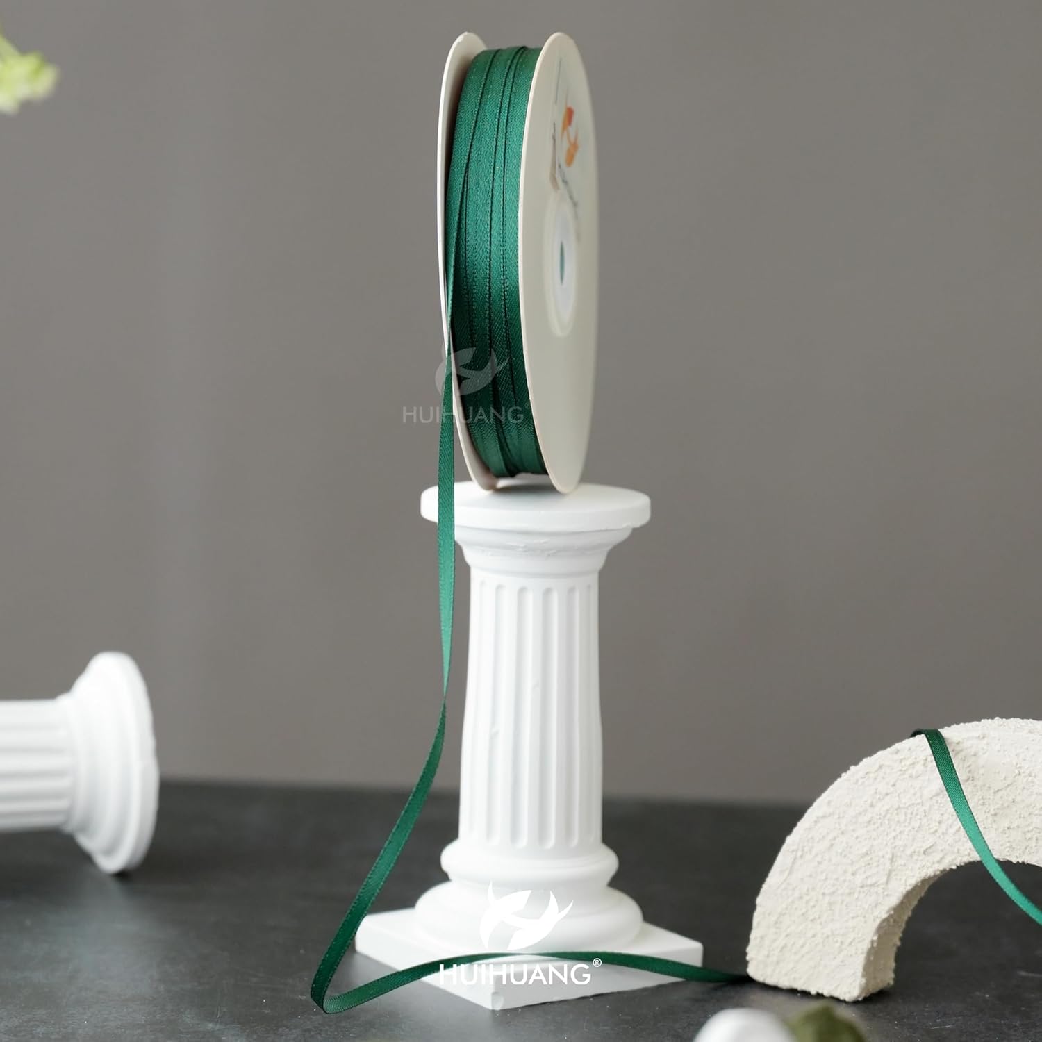 HUIHUANG Solid Color Satin Ribbon 1/8 inch x 100 Yards Roll Ribbon for Crafts (Hunter Green)