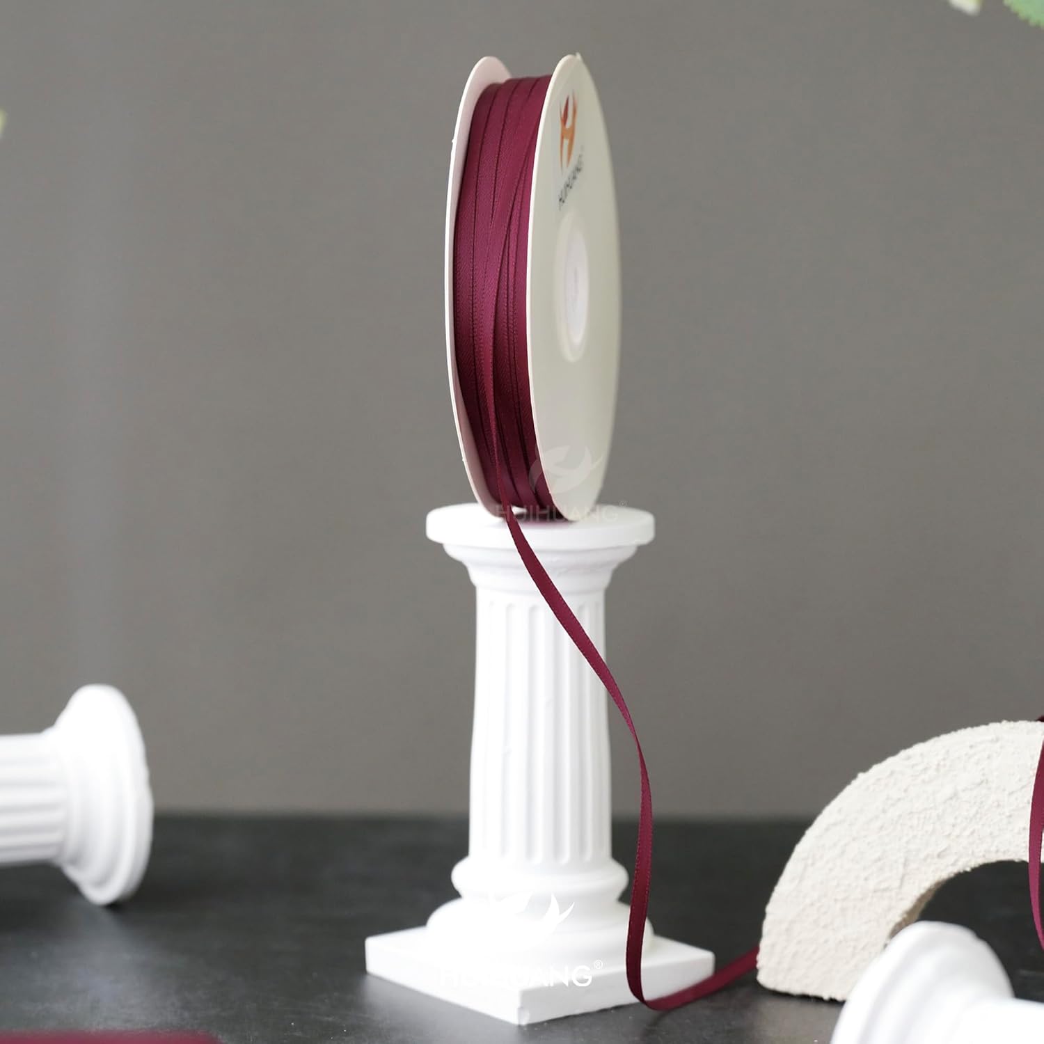 HUIHUANG Solid Color Satin Ribbon 1/8 inch x 100 Yards Double Faced Thin Ribbon Roll for Crafts Gift Wrapping DIY Bows Bouquet Decoration (Burgundy)