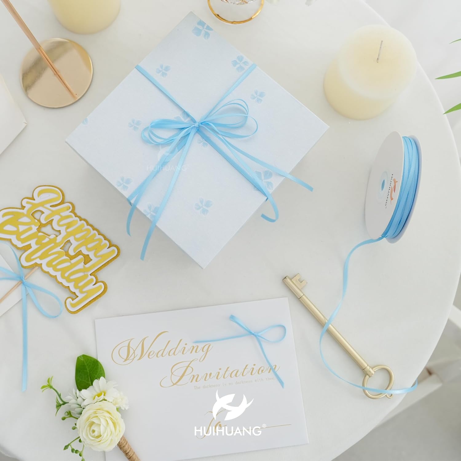 HUIHUANG Solid Color Satin Ribbon 1/8 inch x 100 Yards Roll Ribbon Thin Satin Baby Light Blue 1/8 Crafts Ribbon for Crafts Gift Wrapping DIY Bows Invitation Card (Blue)