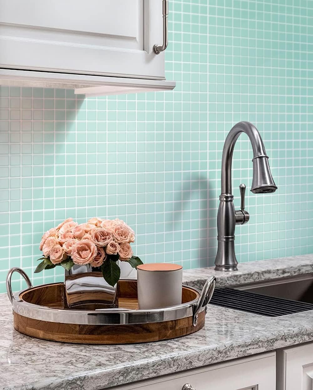 - Available in a wide range of colors, this 1X1 glass mosaic tile offers a timeless feel to any home space. Whether installed for interior or exterior, the durability, beauty, and functionality will not fade with time. The volumizing appearance, and versatility of this tile makes it a perfect option for the swimming area, bathroom floors, kitchen walls, and shower walls, and even for steam areas. It is resistant to stains, humidity, and moisture.