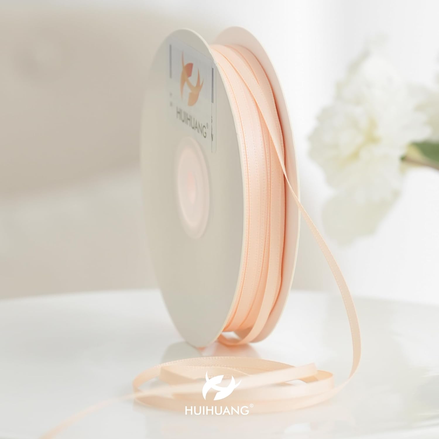 HUIHUANG Thin Satin Ribbon 1/8 inch x Continuous 100 Yards Roll Double Face Peach Satin Ribbon for Crafts, Gift Wrapping, DIY Bows, Invitation Card, Tag Decoration, Ornaments Decor
