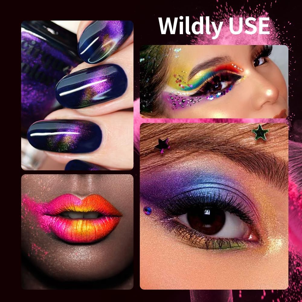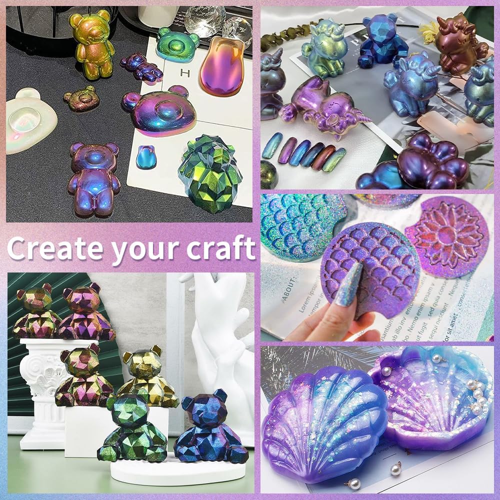 - WIDELY APPLY-EASY USE:Chameleon mica powder, widely used in DIY paintings, tumblers, candles, slime, bath bombs, soap dyes, home decoration, furniture, etc. Suitable for coloring your epoxy resin and UV resin crafts surface