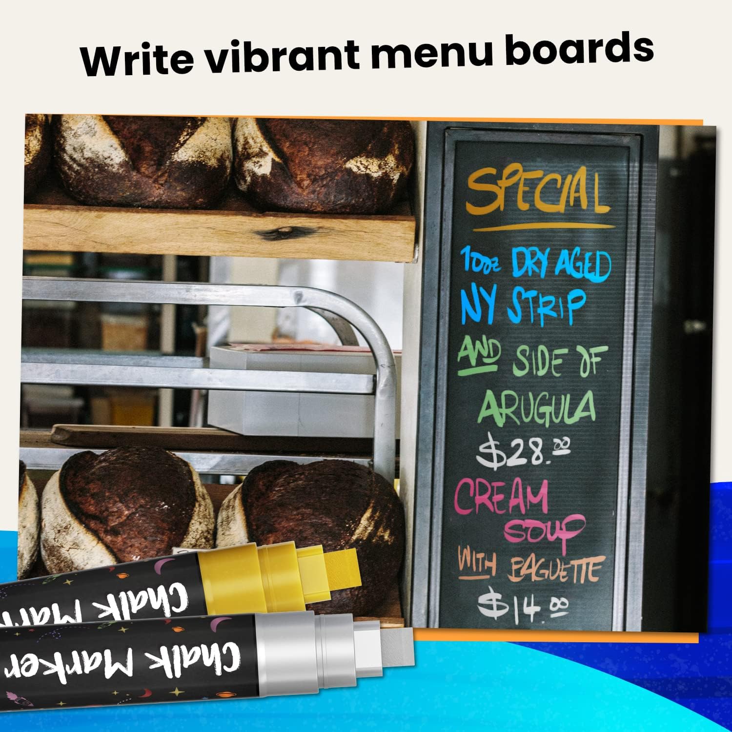 - Long Lasting - While other pens crack under heavy use, our richly pigmented chalk marker pen set stays fray free.