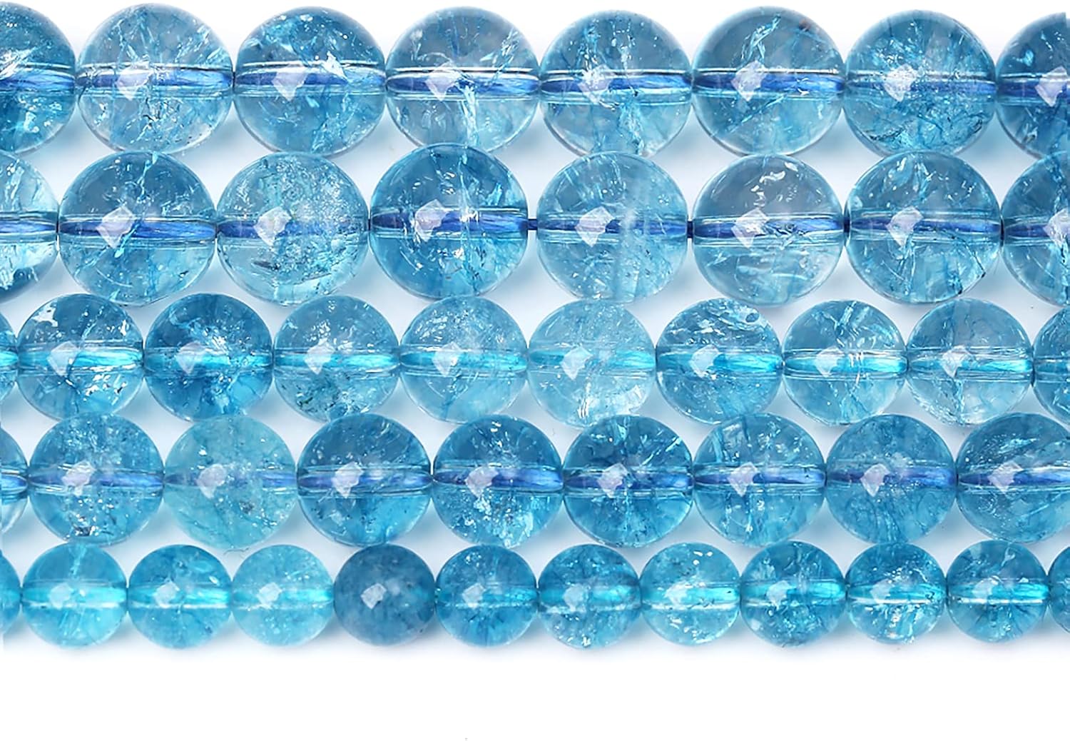 10mm 38pcs Blue Topaz Crystal Quartz Natural Stone Round Loose Beads for Jewelry Making DIY Bracelet Necklace Earrings