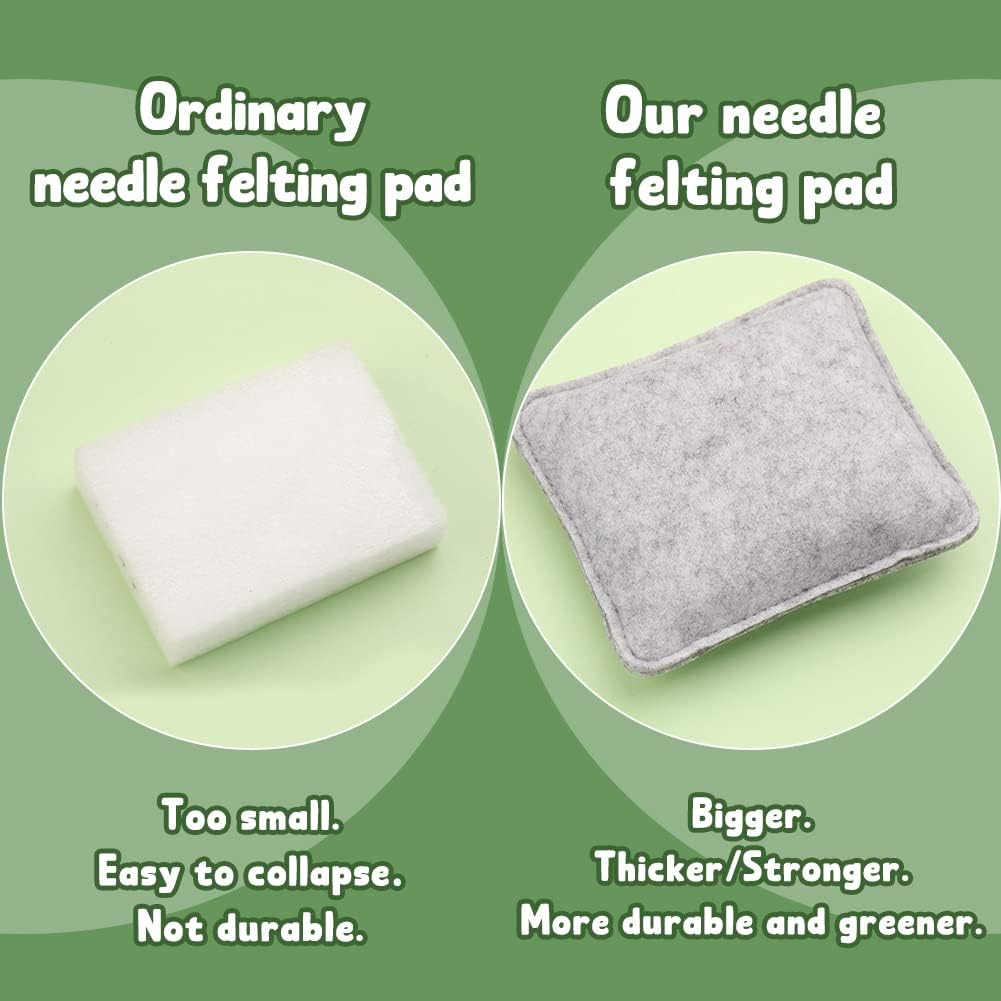 - Better Needle Felting Pad: In order to make your needle felting better, we provide you with larger and thicker felting pads. Our needle felting pad is made of soft felt and upgraded sponges. Our test found that this needle felting mat is stronger than a foam mat and does not collapse easily. Can be recycled multiple times. More green. Worry-free needle felting, free your hands.