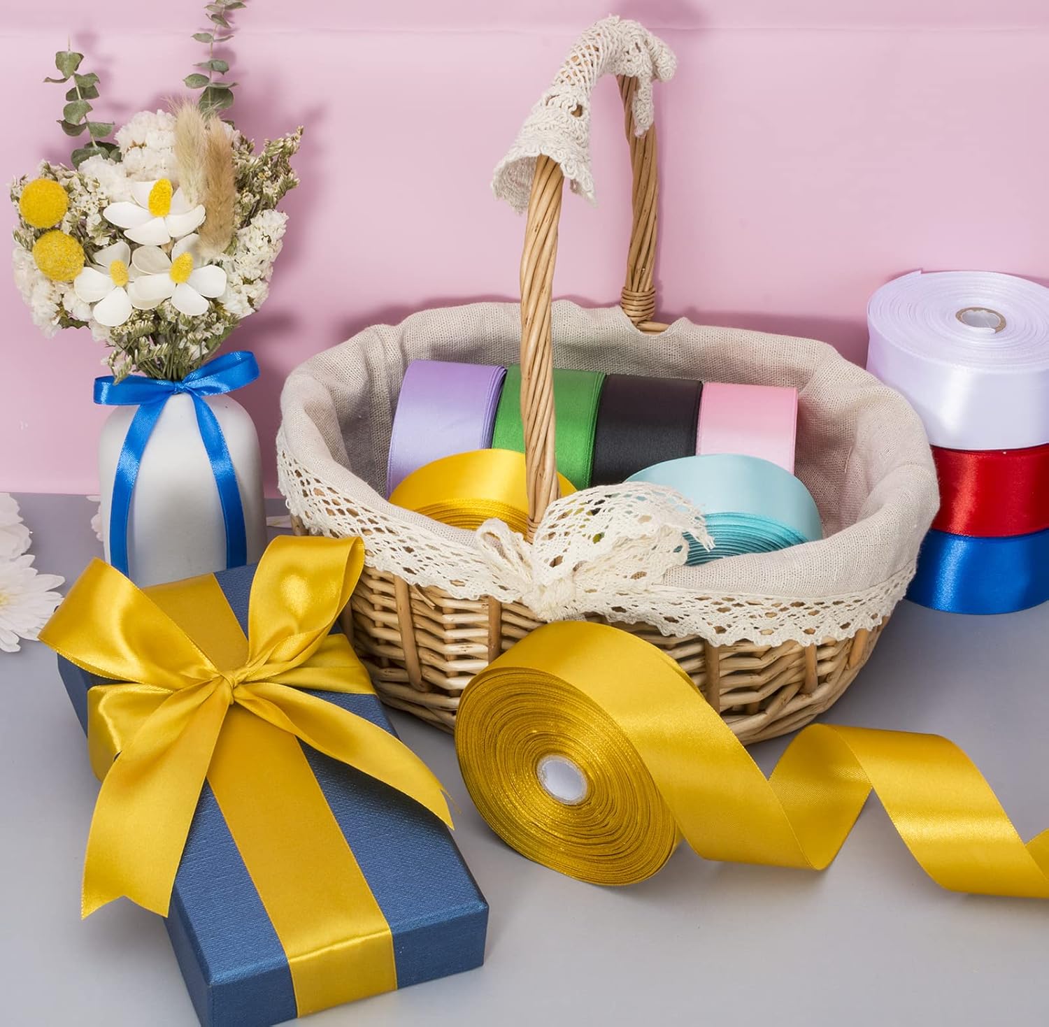 1 1/2 Inch Gold Solid Satin Ribbon, 50 Yards Craft Fabric Ribbon for Gift Wrapping Floral Bouquets Wedding Party Decoration