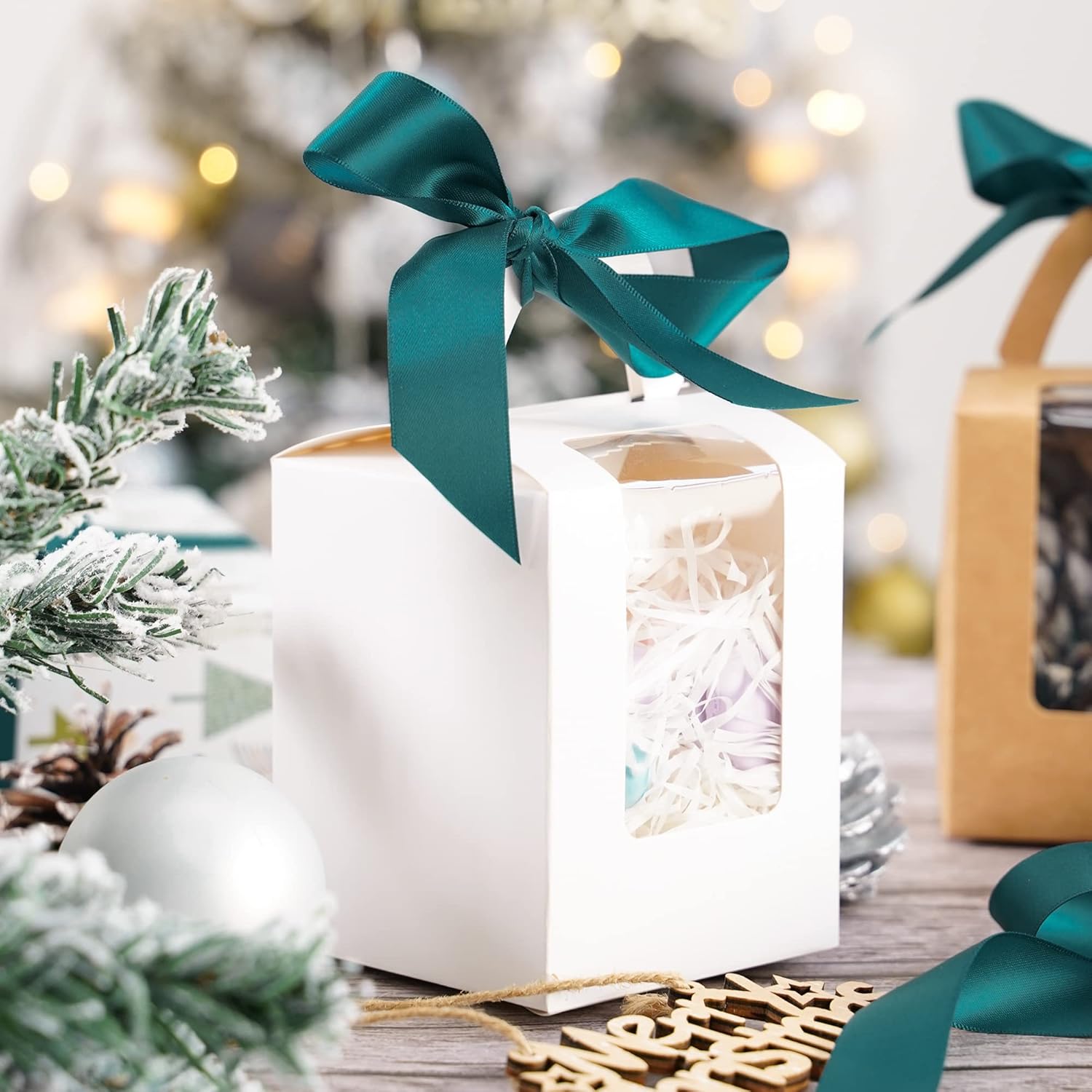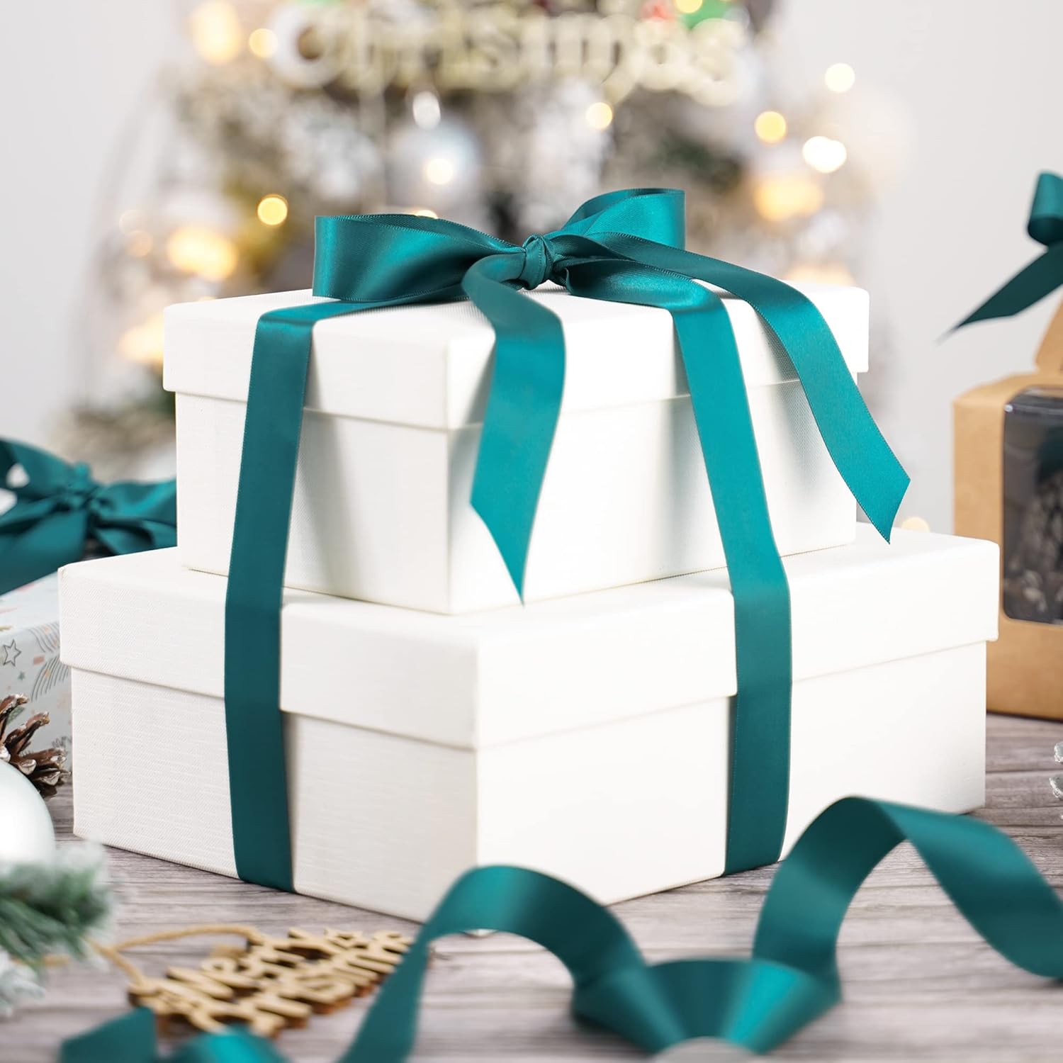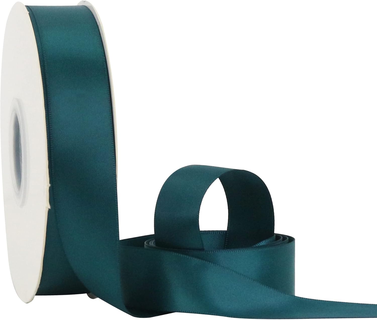 HUIHUANG Teal Green Ribbon 1 inch x 50 Yards Double-Faced Satin Silk Ribbon for Gift Wrapping, Crafts, Wedding, Christmas Tree Decor