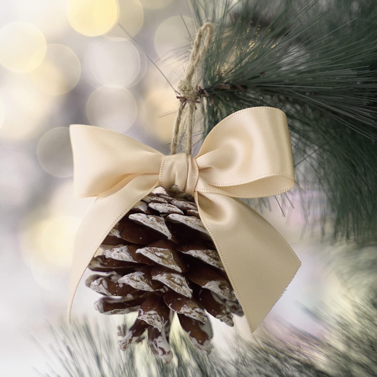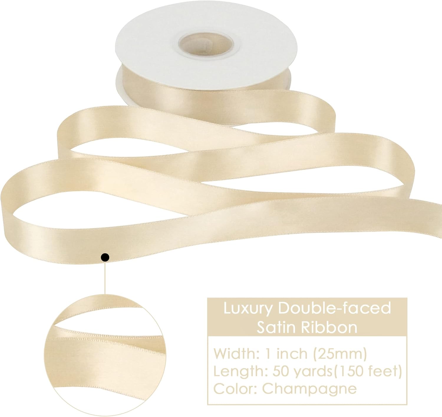 HUIHUANG Champagne Satin Ribbon 1 inch Silk Satin Ribbon 50 Yards Double Face Satin Ribbons for Wedding Decor Christmas Gift Wrapping Tree Decor Bows Bridal Floral Bouquet Invitation Card Party