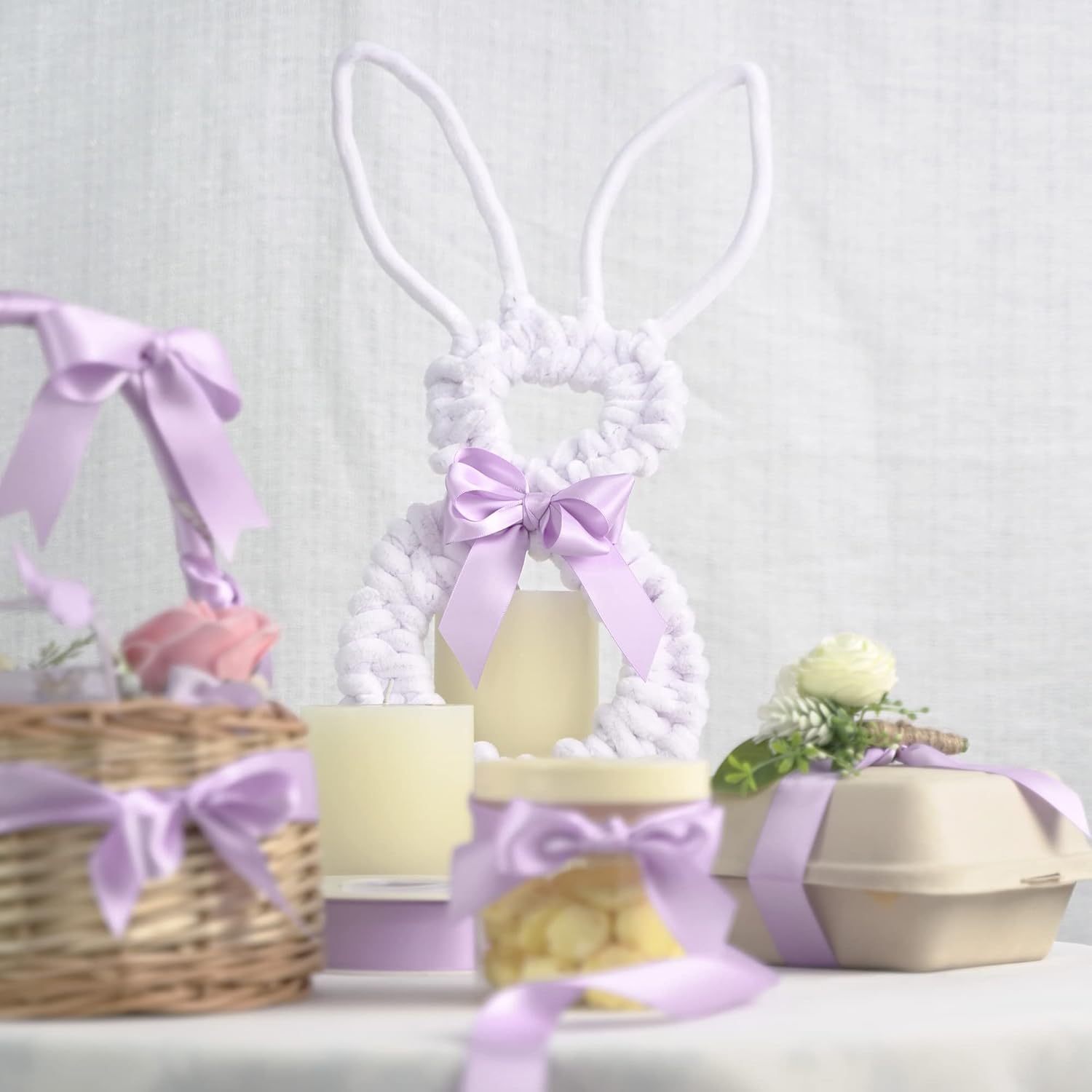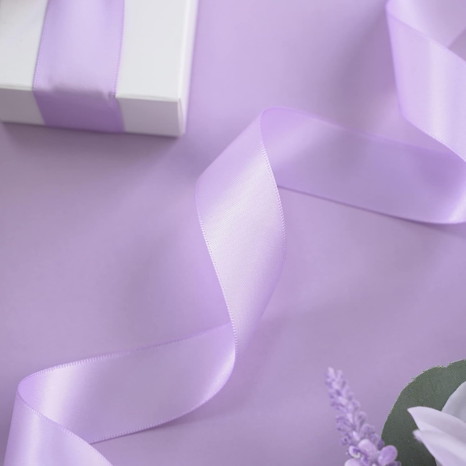 HUIHUANG Light Purple Ribbon Lavender Satin Ribbon 50 Yards Double Face Silk Satin Ribbons for Easter Day Gift Basket Gift Wrapping Wreath Bows Making Wedding Floral Bouquet Invitation Decor