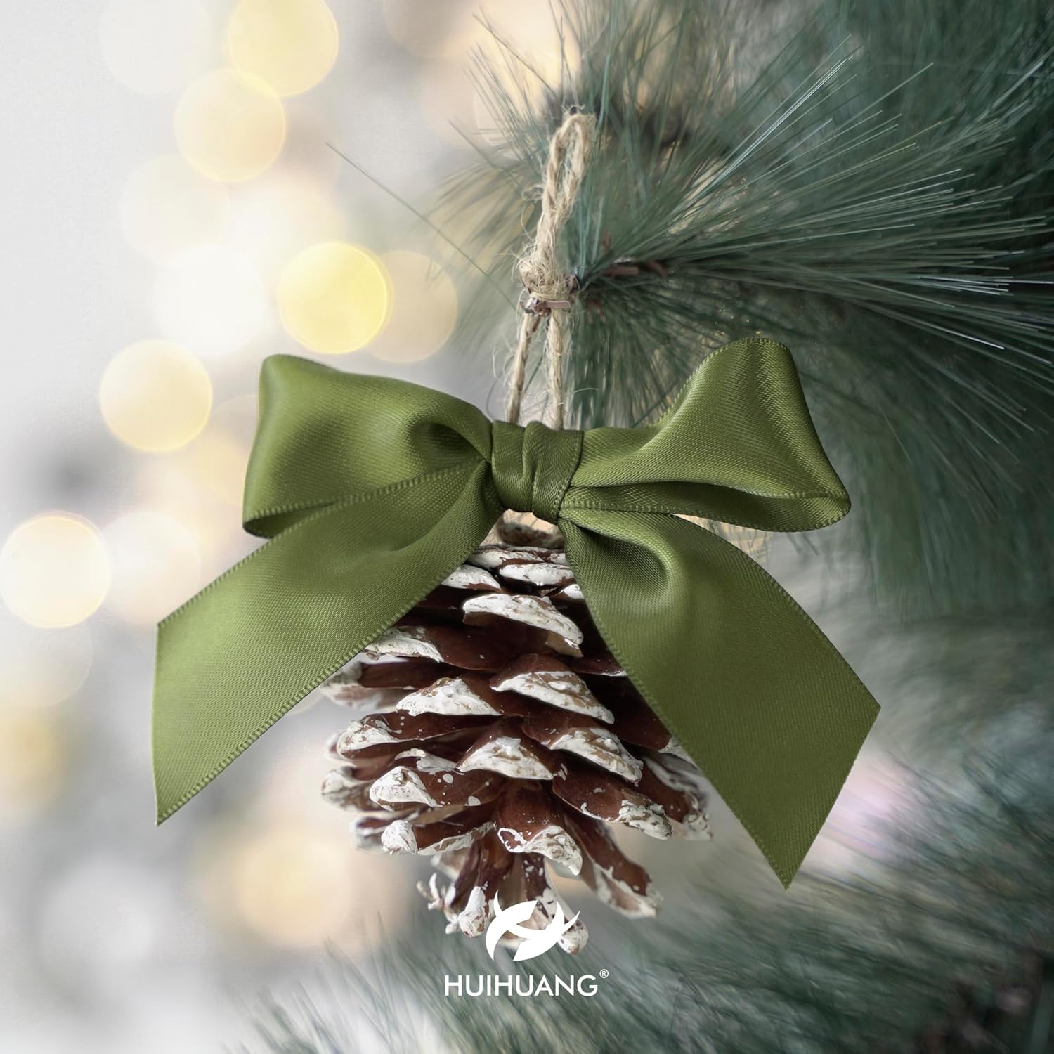 HUIHUANG Satin Ribbon 1 inch Moss Green Ribbon 50 Yards Double Face Silk Satin Ribbons for Crafts Christmas Tree Decor Gift Wrapping Bows Bridal Floral Bouquet Wedding Invitation Card Party Decor