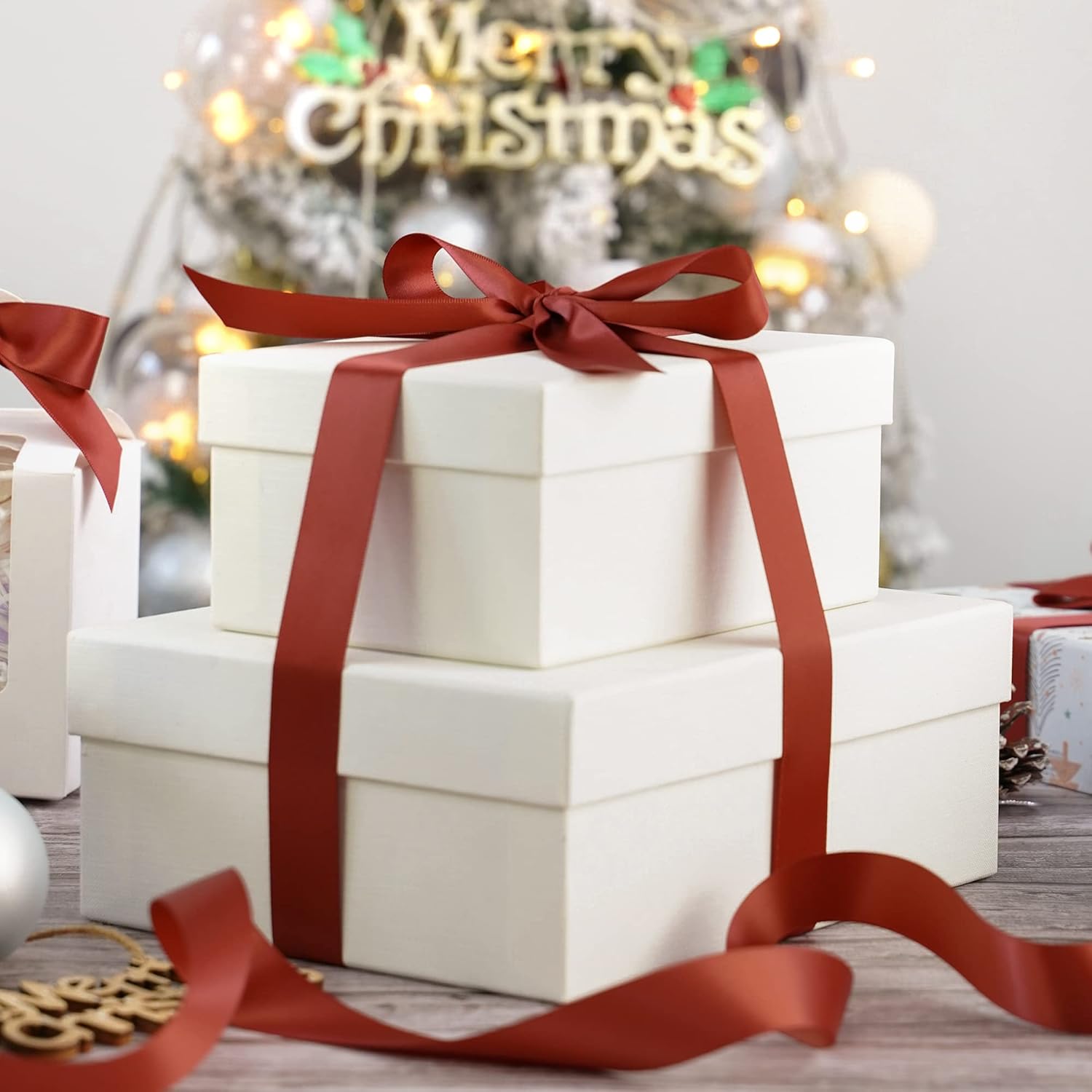 - Size: Double-faced satin ribbon measures 1" wide and continuous 50 yards(150 feet) long in a complete roll. Perfect size for gift wrapping, crafts and holiday decor
