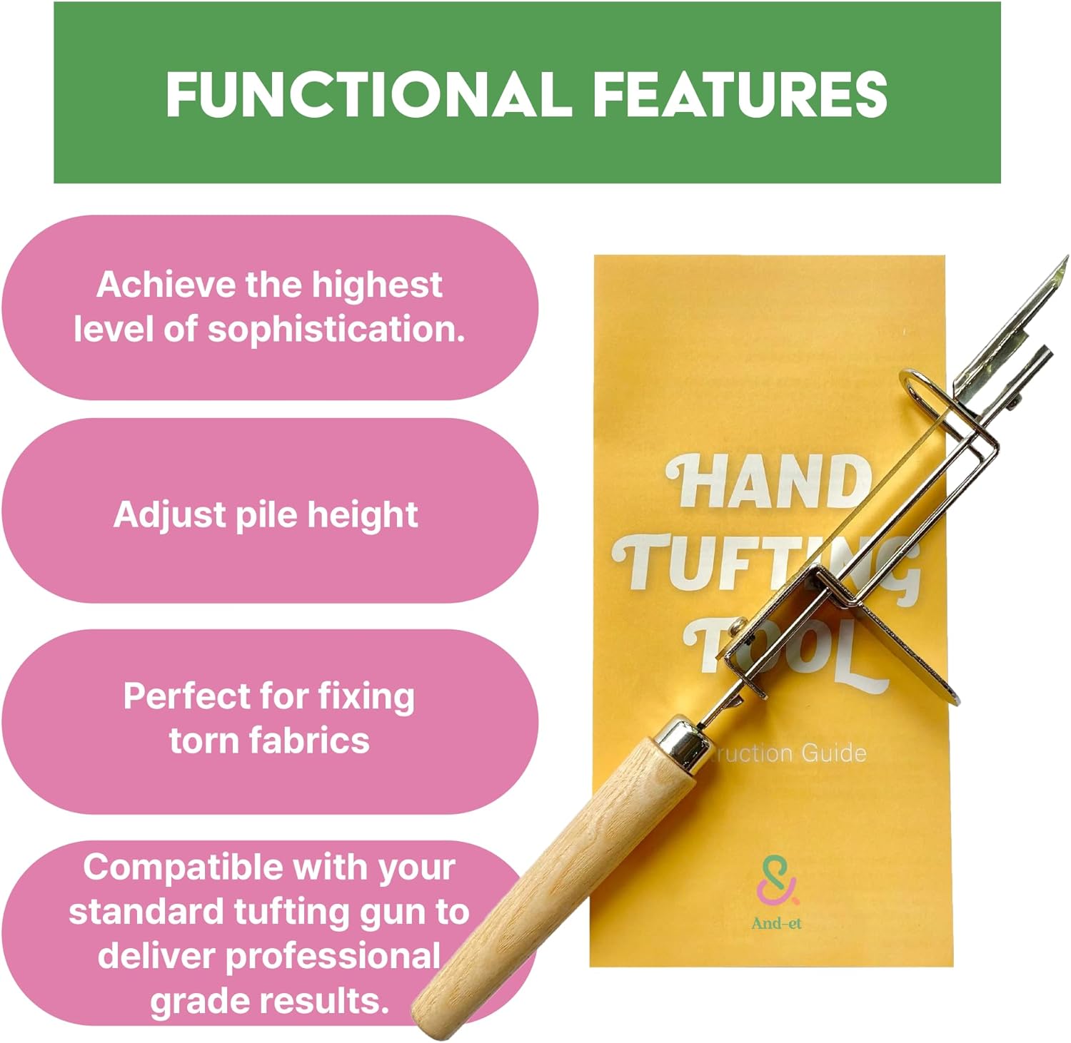 And-et EasyTuft Gun - Adjustable Height, Seamless Repairs, Custom Design (Essential for Tufting Gun), ProTuft Kit
