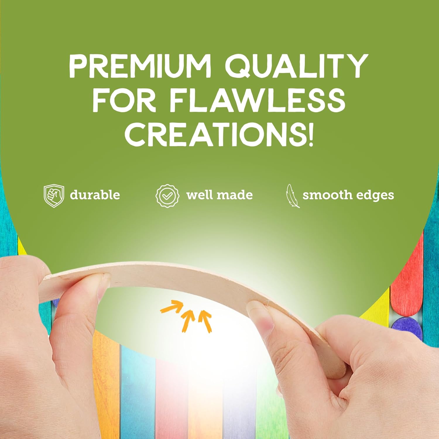 - DURABLE & SMOOTH WOOD POPSICLE STICKS — High-quality wood craft sticks with smooth edges for safe use; no splinters, making them safe popsicle sticks for crafts with kids.