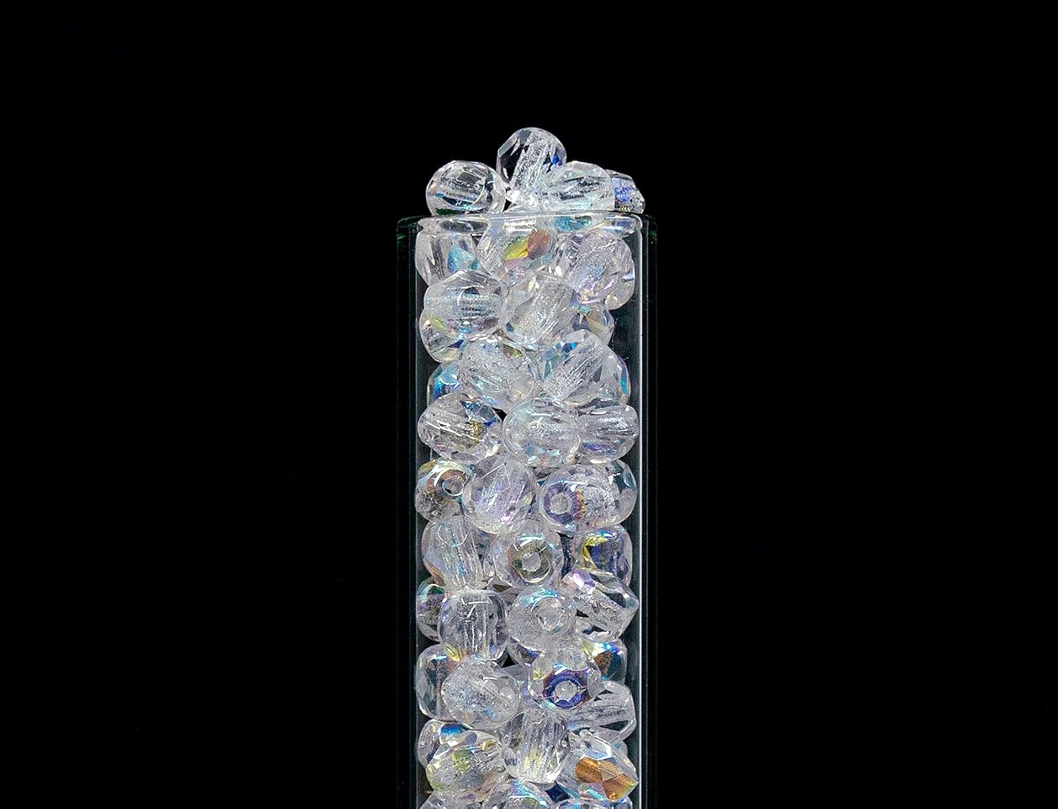 100 pcs of Faceted Fire Polished Pressed Czech Glass Beads 4mm (0.16in), Crystal AB 00030-28701 BCV