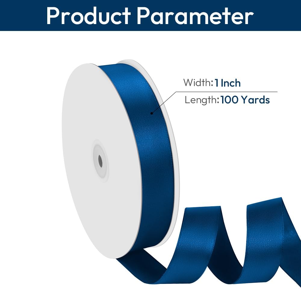 1" Width x 100 Yards Satin Ribbon, Navy Blue Ribbon Perfect for DIY Craft, Bows, Gift Wrapping, Flower Bouquet, Valentine's Day, Christmas and Party Decoration