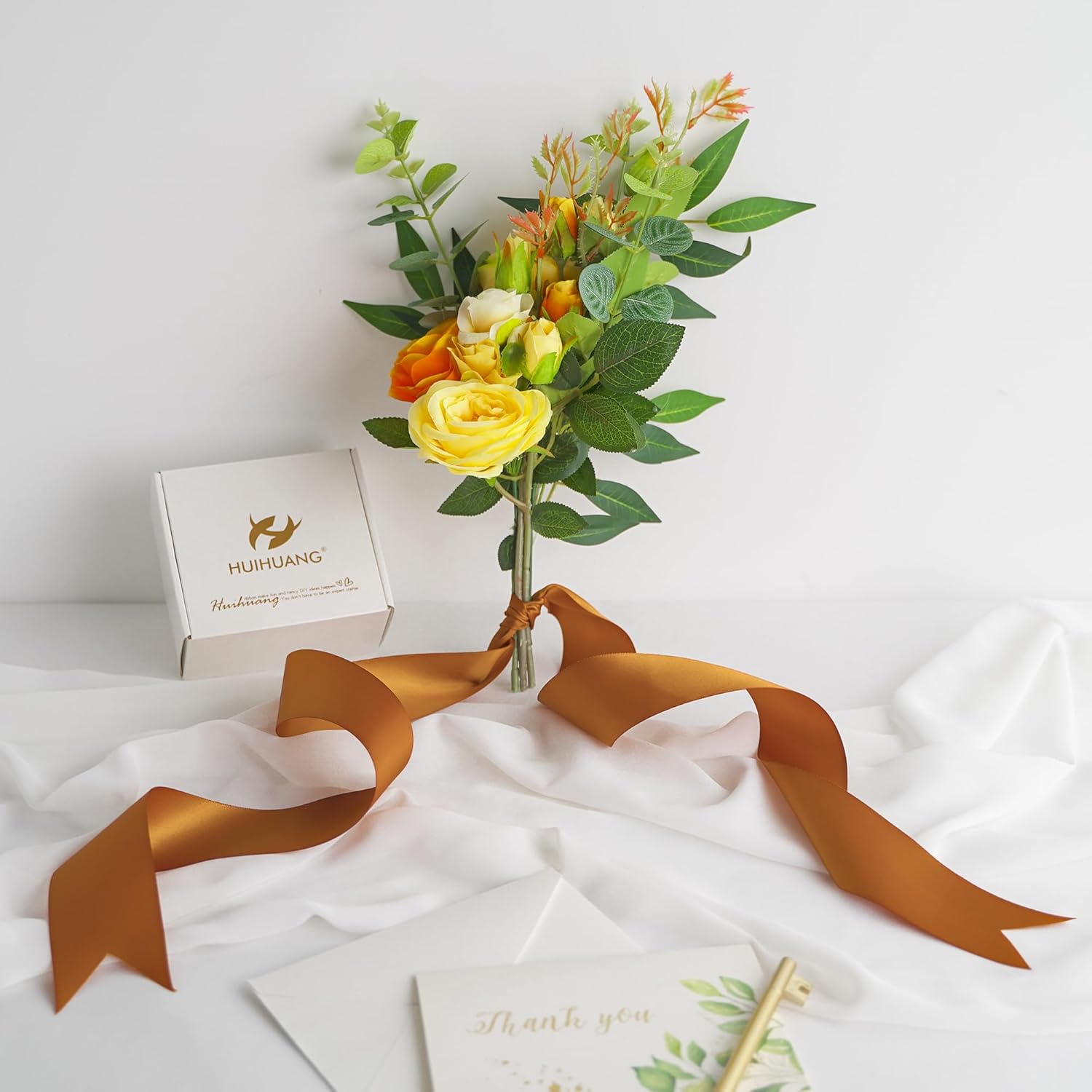 HUIHUANG Copper Satin Ribbon 2 Inch Wide Double Face for Flower Bouquet Wrap, Silk-Like for Crafts, Gift Wrapping, Wedding Bridal Holiday Decor, Bows Making - 25 Yards/Roll