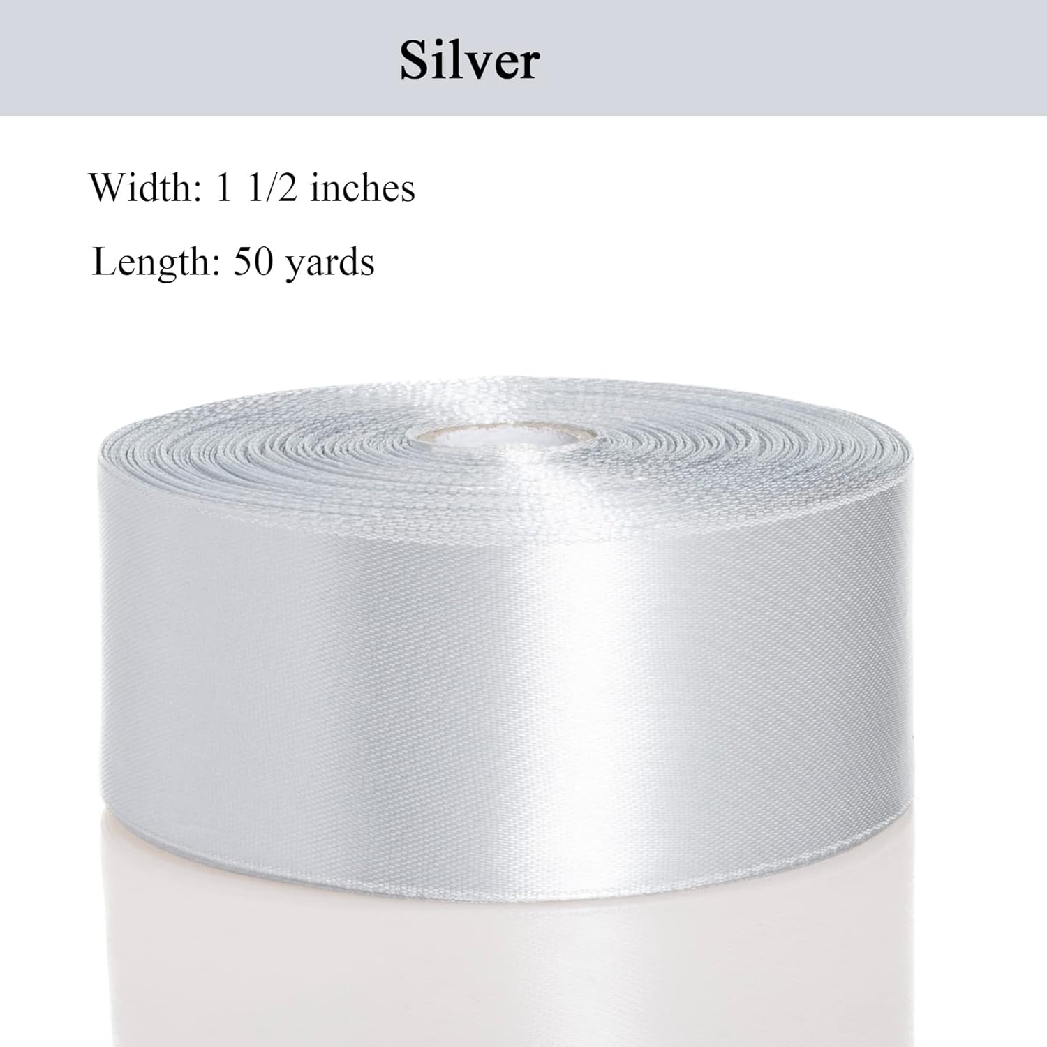 1 1/2 Inch Silver Solid Satin Ribbon, 50 Yards Craft Fabric Ribbon for Gift Wrapping Floral Bouquets Wedding Party Decoration