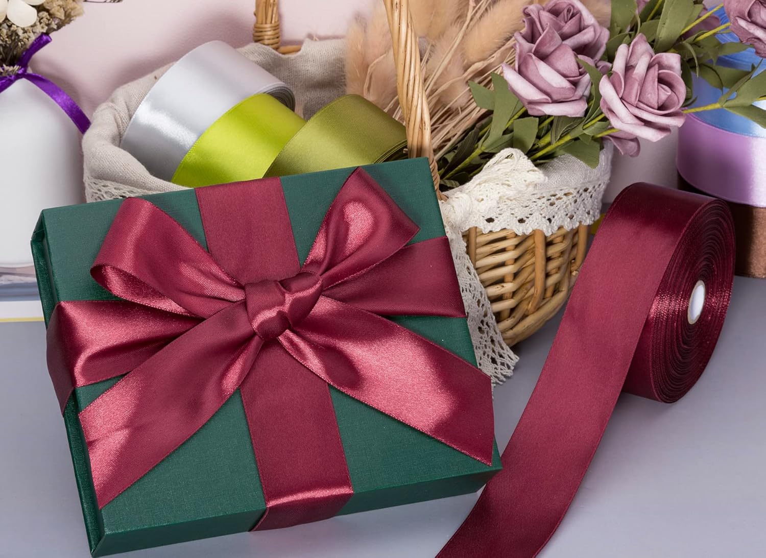 1 1/2 Inch Wine Red Solid Satin Ribbon, 50 Yards Craft Fabric Ribbon for Gift Wrapping Floral Bouquets Wedding Party Decoration
