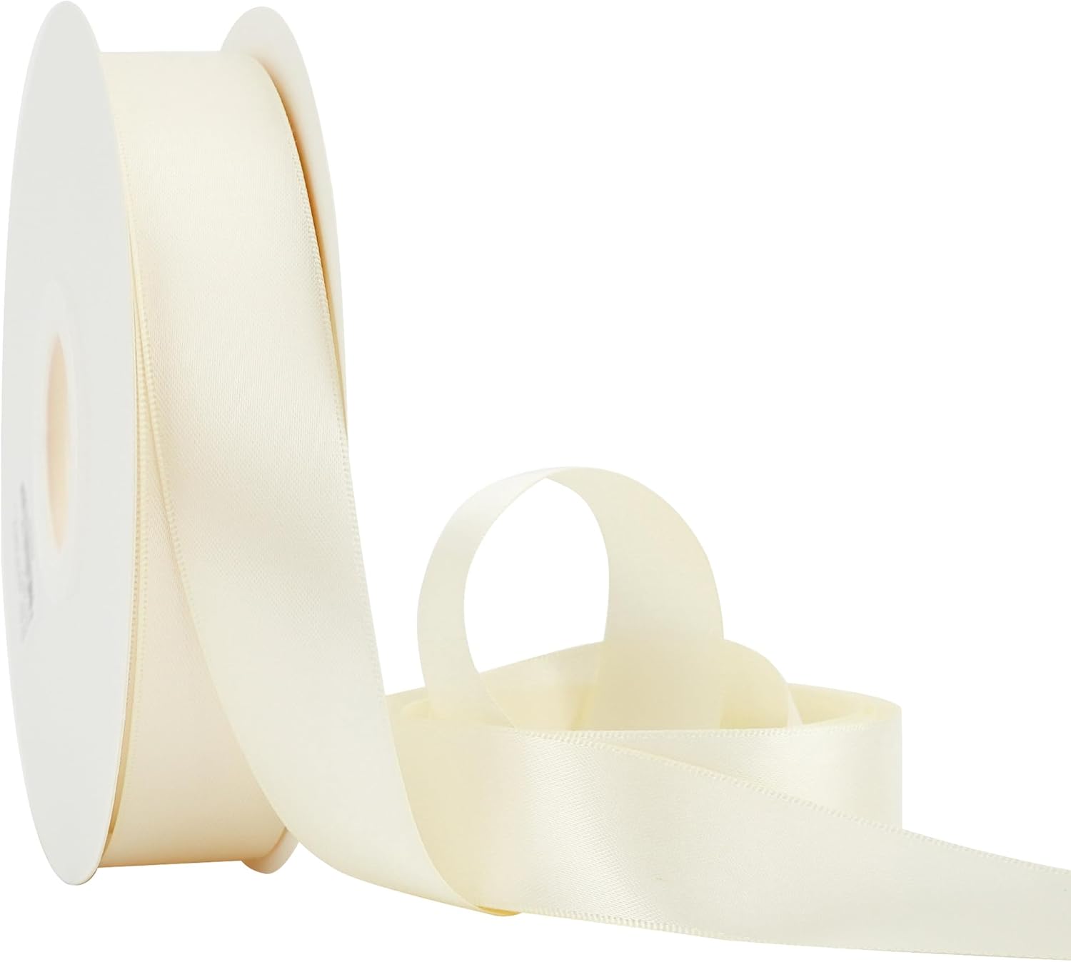 HUIHUANG Cream Ribbon 1 inch x 50 Yards Ivory Double-Faced Polyester Silk Satin Ribbon for Gift Wrapping, Wedding Invitations, Hair, Bows Making, Holiday Decor, Floral Arrangement