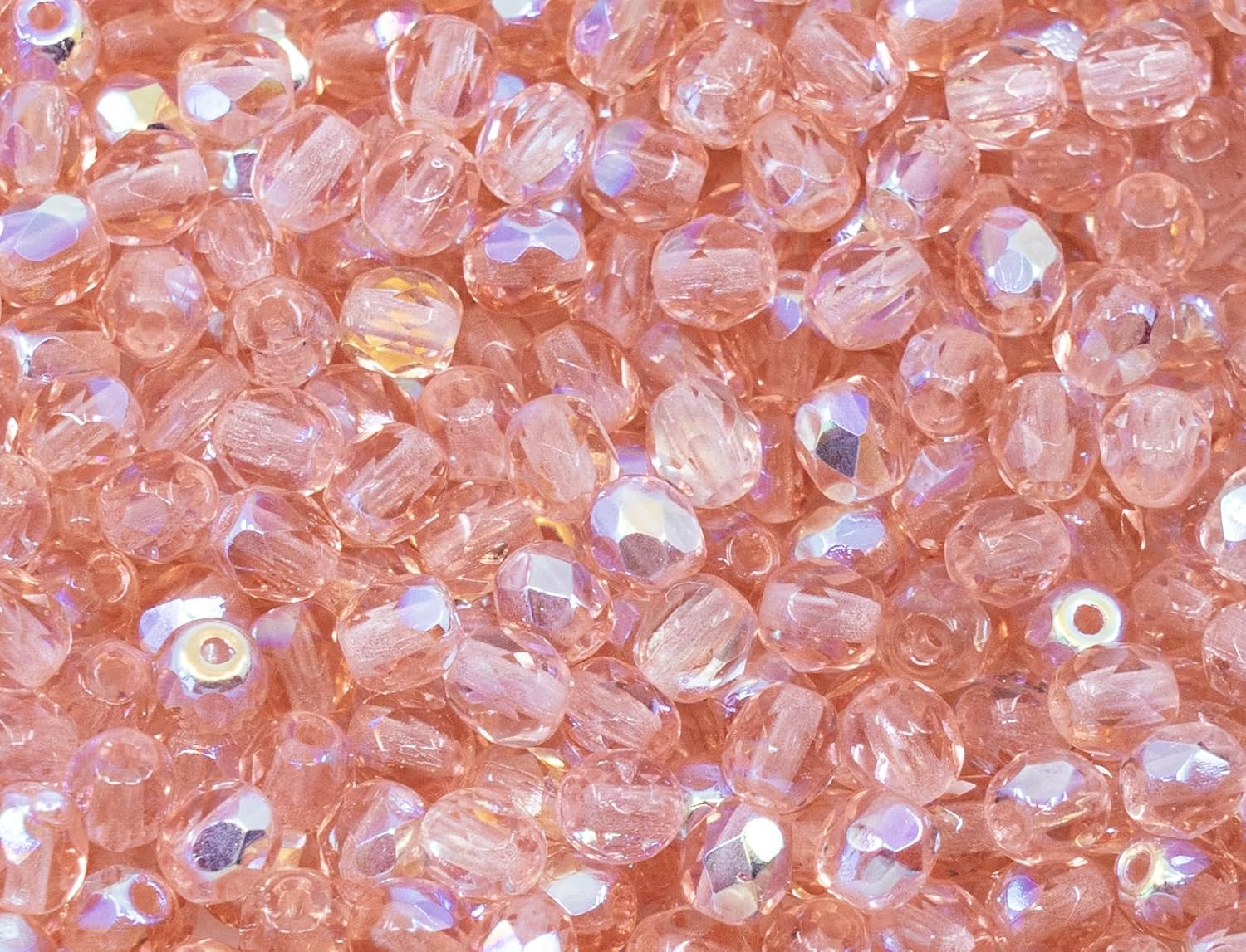 100 pcs of Faceted Fire Polished Pressed Czech Glass Beads 4mm (0.16in), 70120-28701 Pink Rosaline AB