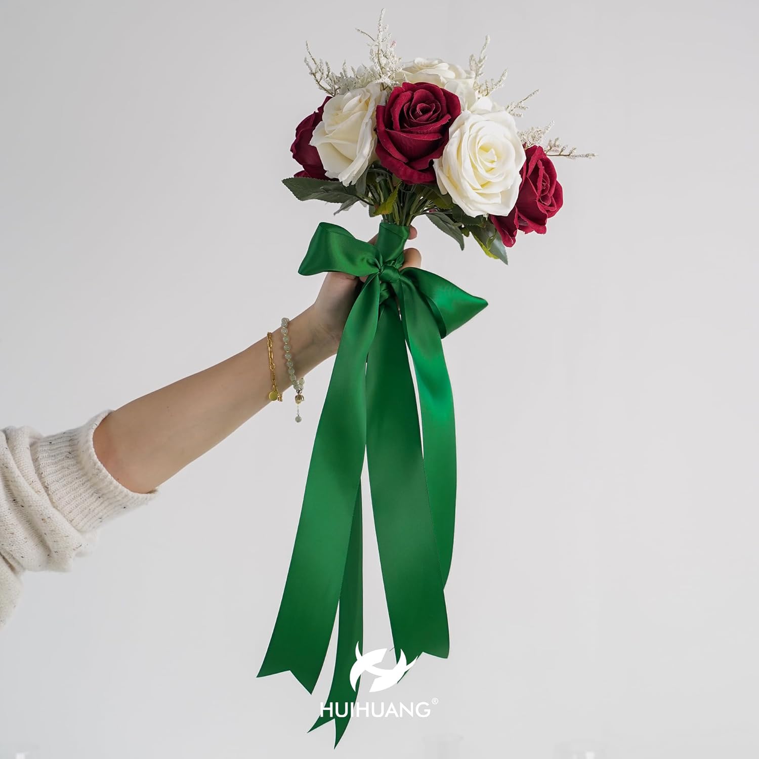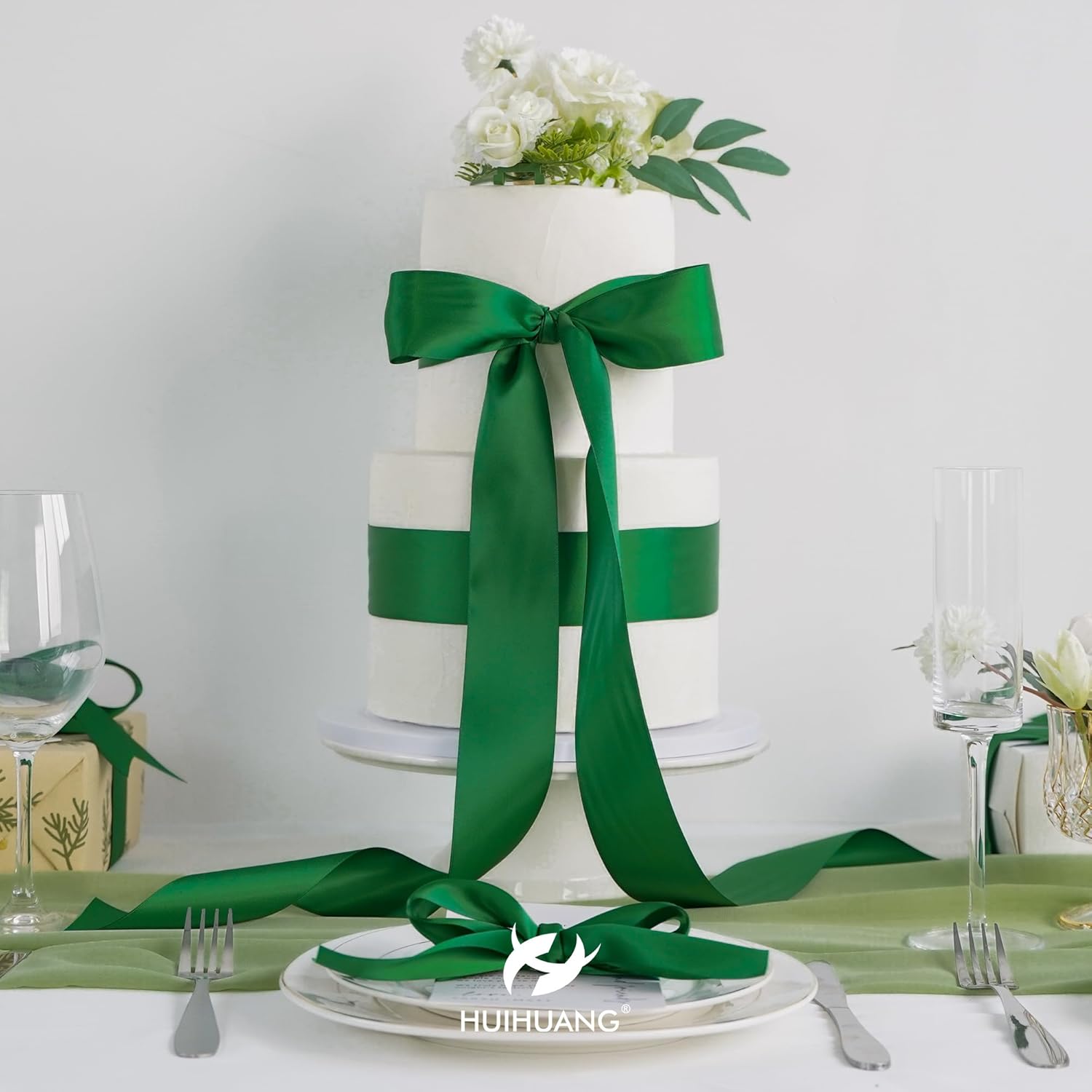 HUIHUANG Forest Green Ribbon 2 inch Double-Faced Forest Green Silk Fabric Ribbon for Christmas, Crafts, Bows Making, Flower Bouquet Wrap, Gift Wrapping, Home Decor, Hairs-25 Yards/Roll