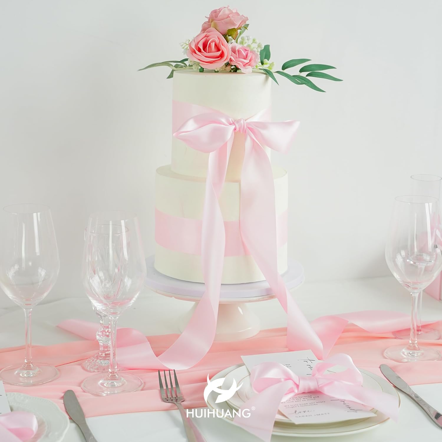 HUIHUANG Pink Ribbon 2 inch Wide Double-Faced Baby Pink Satin Silk Ribbon for Flower Bouquet Wrap, Baby Shower, Wedding Decor, Gift Wrapping, Hairs, Hats, Crafts and Bows Making- 25 Yards/Roll