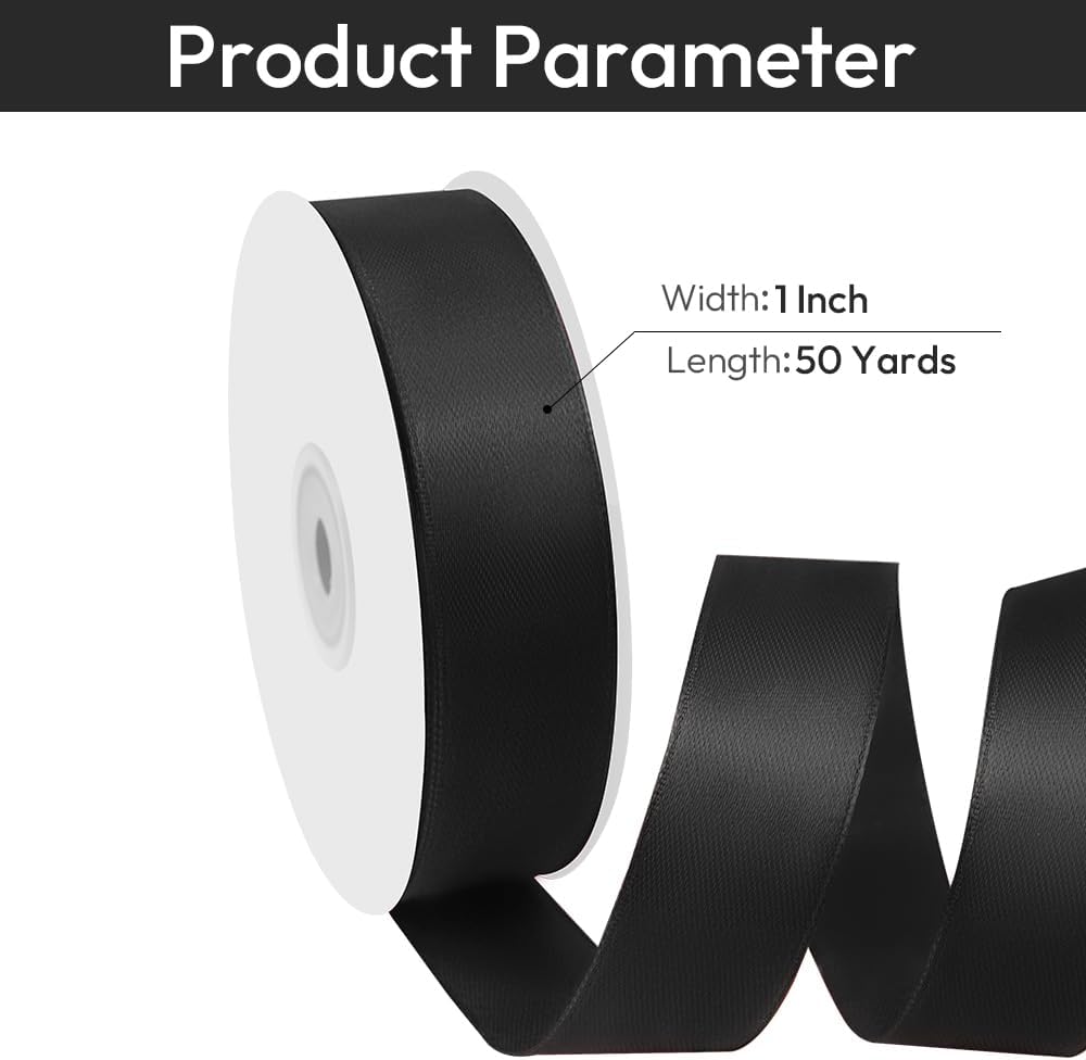 - 【Ample Length for Your Craft】1" wide black satin ribbon is 50 Yds long, providing ample material for all your crafting needs such as wedding invitations, sewing, hair bows, bridal bouquets, lei making, homecoming mum accessories, and more.