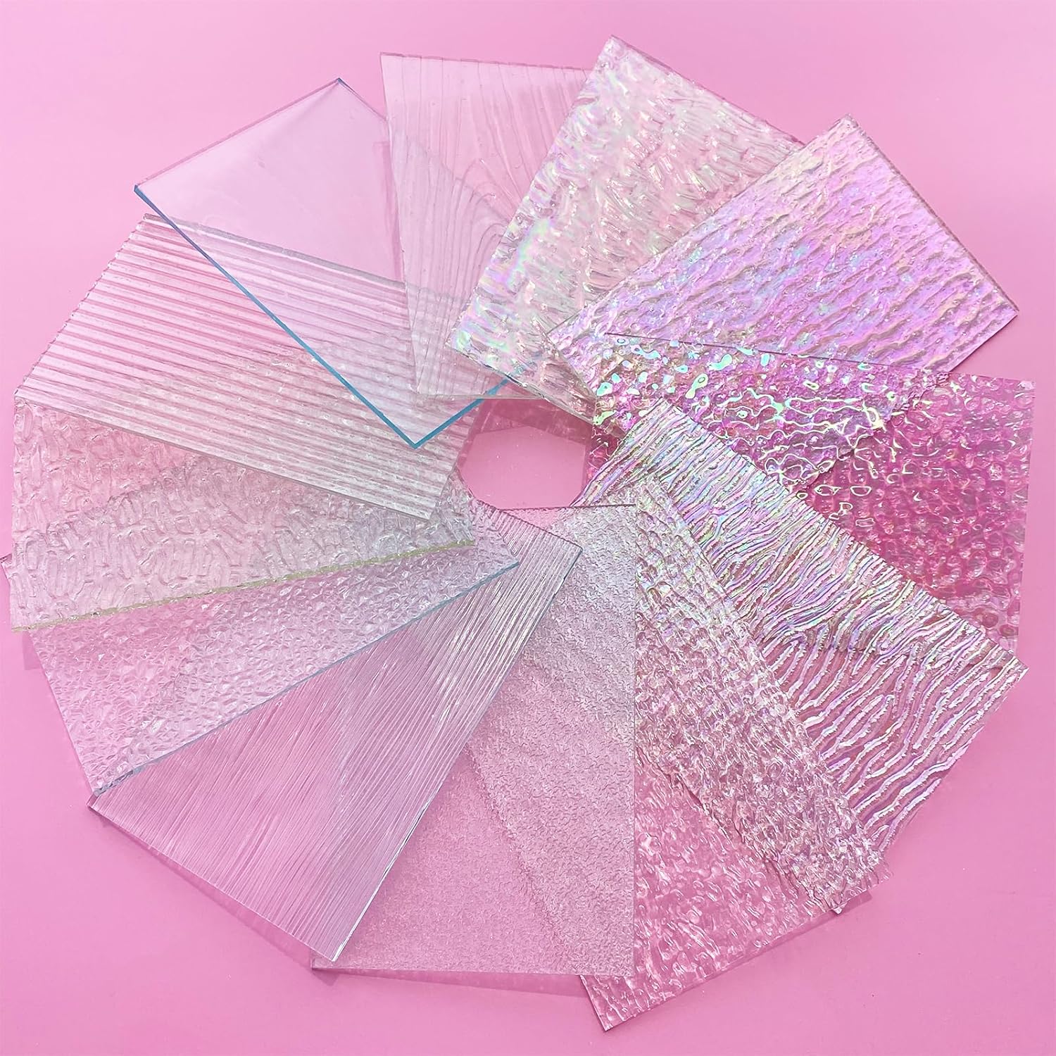 - Package Includes: 12 sheets mixed textures clear stained glass pieces, each stained glass sheet has the unique textures, the colors range from clear white to rainbow iridescent
