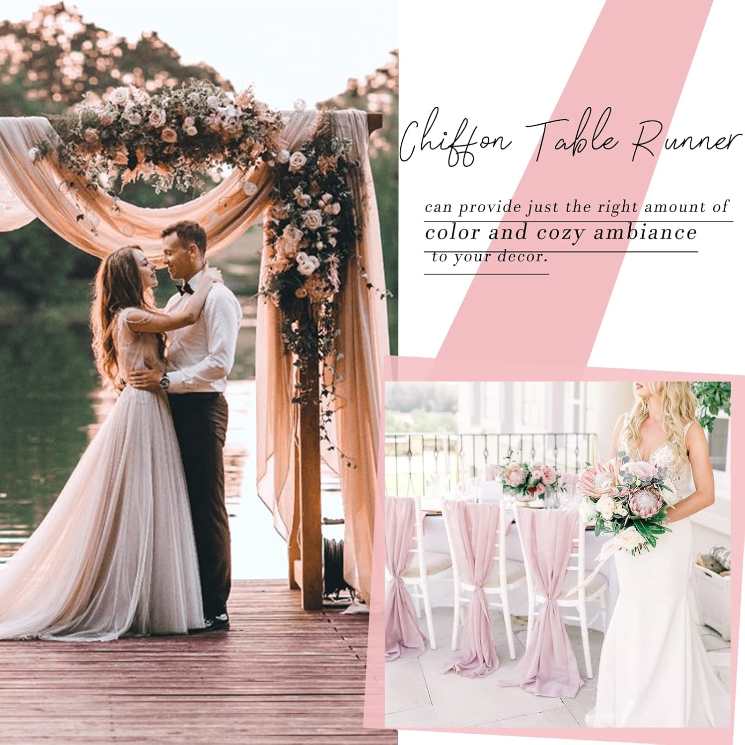 - Elegant Appearance: These romantic chiffon table runner is perfect to create beautiful folds or leave it flowing loose onto the floor, is perfect for your event's table decor! They will catch the attention of your guests quickly, adding a dreamy aspect to your wedding.