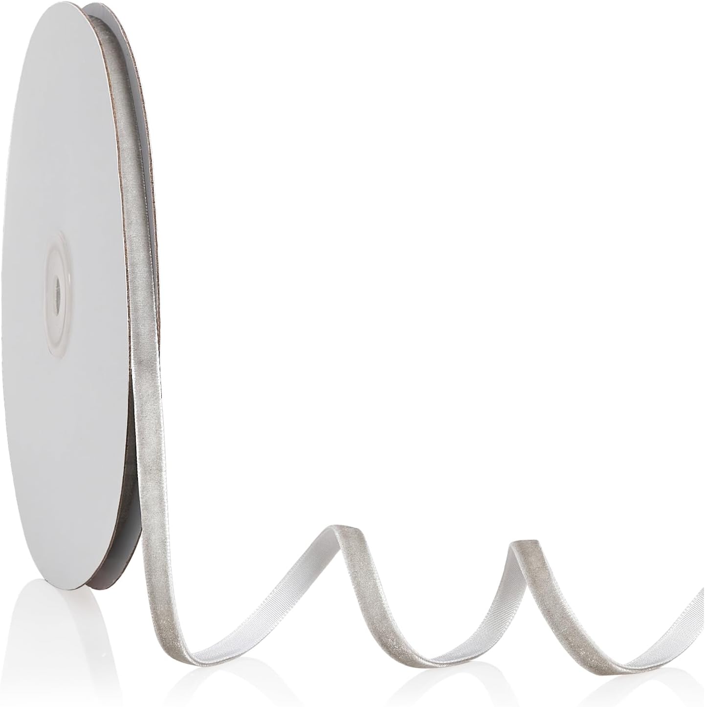 1/4" X 20 Yards Silver Grey Velvet Ribbon for Christmas Tree Wreath Decoration Handmade Crafts Ornaments Gift Wrapping & Bow Making