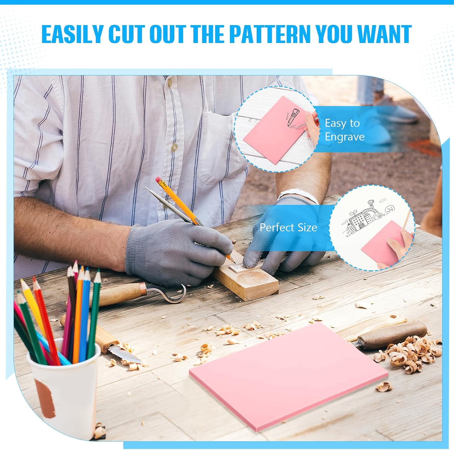 10 Pcs 4" x6“ Pink Rubber Art Soft Linoleum Carving Block, Rubber Crafts Linocut Block for Printmaking,Stamp Carving Block