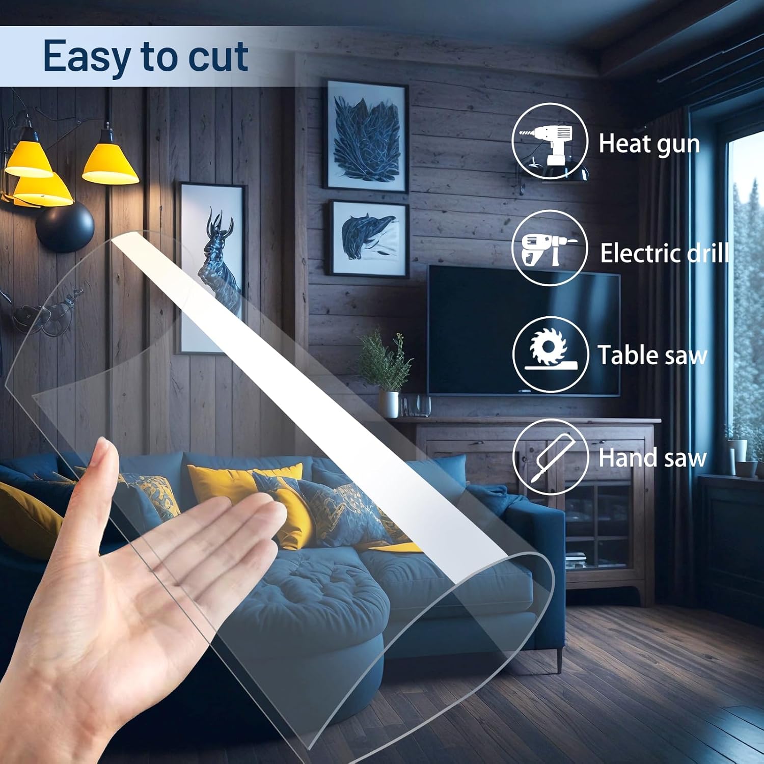 - ใ๐๐๐ฌ๐ฒ ๐ญ๐จ ๐๐ฎ๐ญใThe clear plastic sheets can be easily cut into various shapes by table saw, jigsaw, drill, router, bandsaw, and other hand tools according to your actual needs.