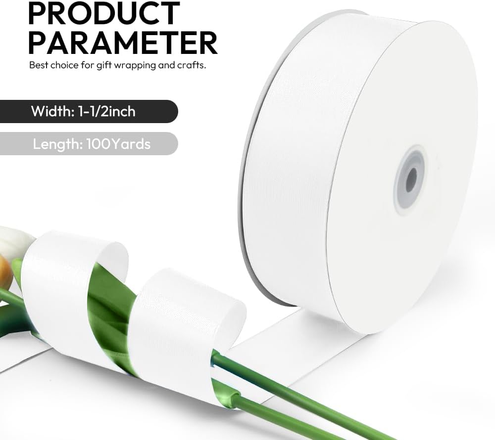 1-1/2 Inch 100 Yards Satin Ribbon White, Solid Color Fabric Ribbon for Gift Wrapping, Wedding, Polyester Gift Ribbon for Birthday Party Decoration, Craft, Hair, Floral, Sewing