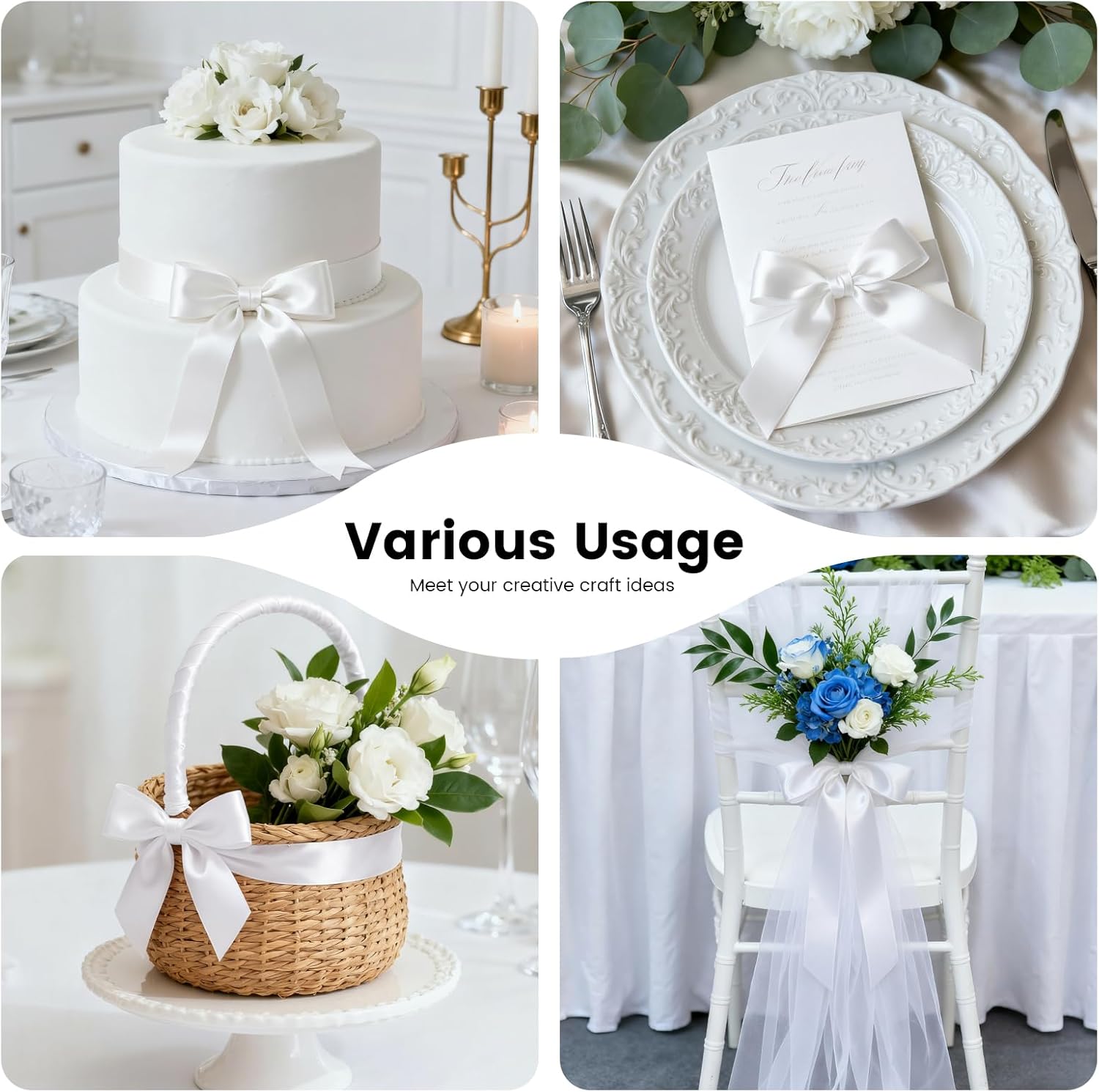 - 【High Quality】: Our fabric satin ribbon is made of 100% high-quality polyester. The single face ribbon for gift wrapping is White color and has smooth texture which is easy to cut and use.