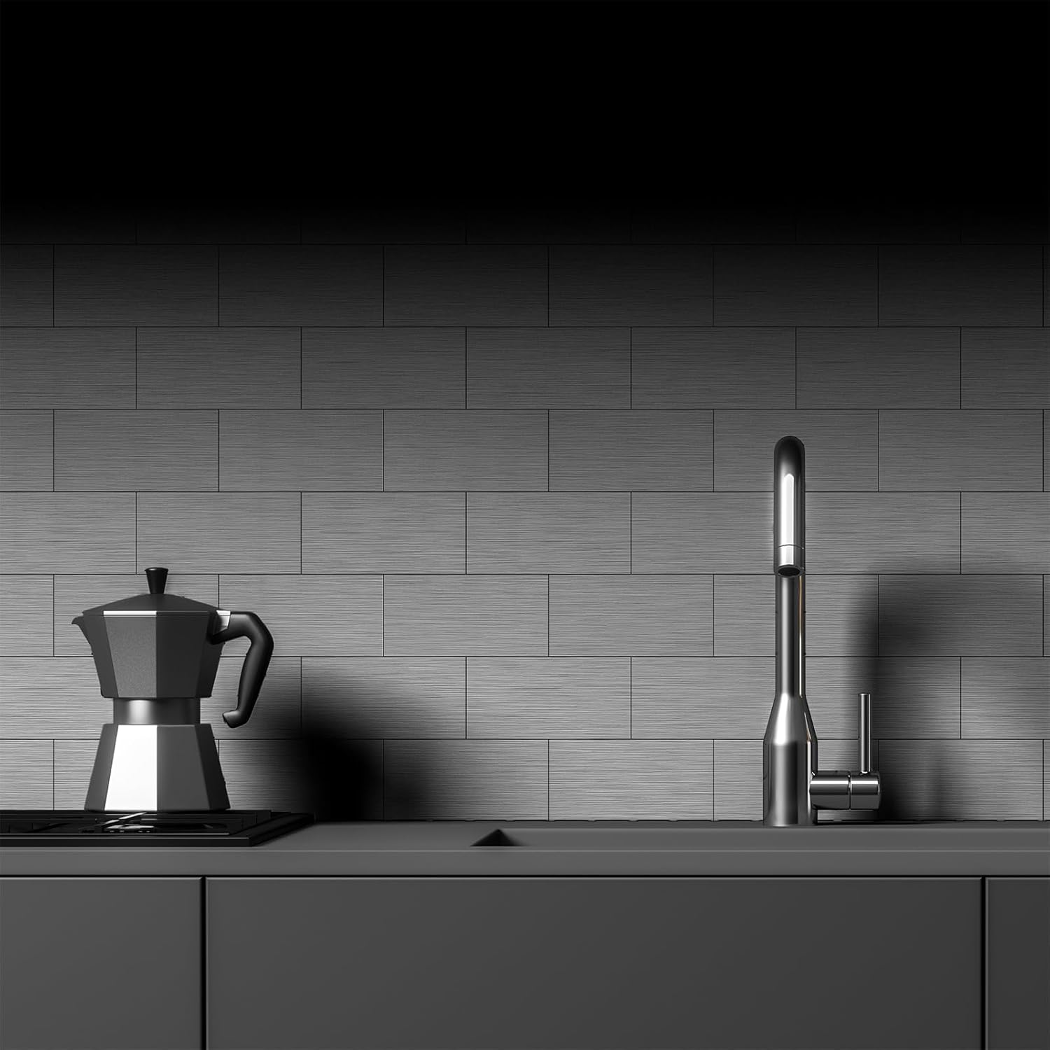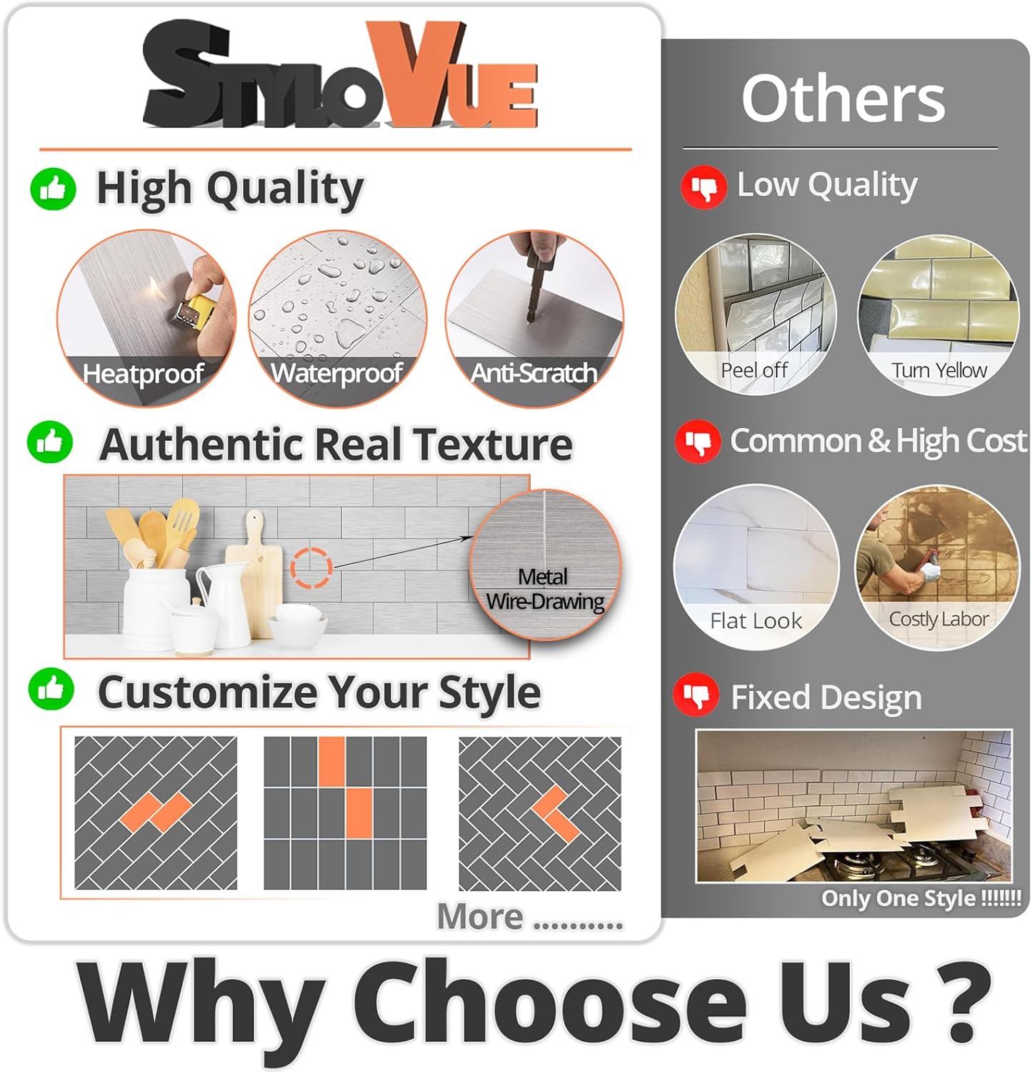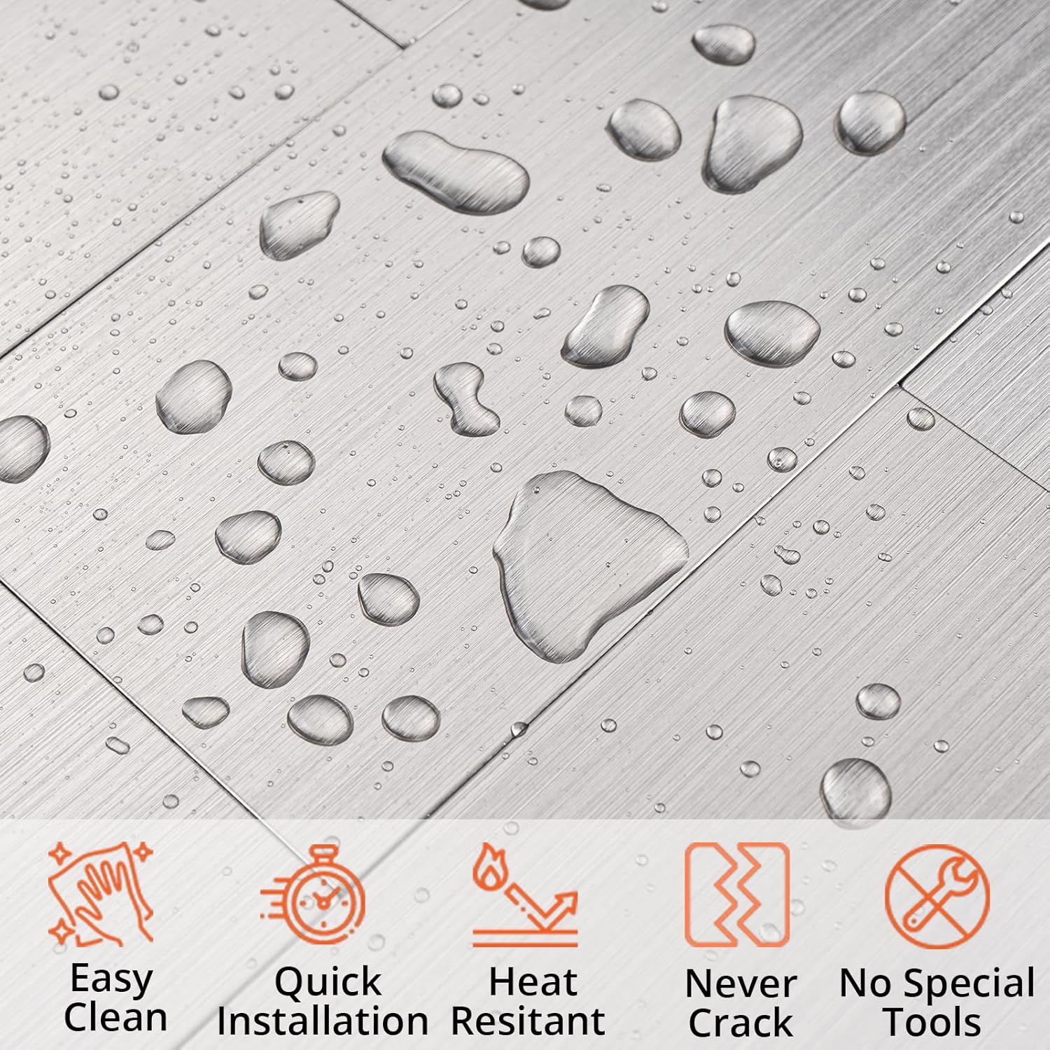 100 Pieces Peel and Stick Backsplash for Kitchen, 3" x 6" PVC Subway Tile Upgraded Brushed Stainless Backsplash Stick on Tile Elevate Kitchen, Bathroom, Fireplace,RV