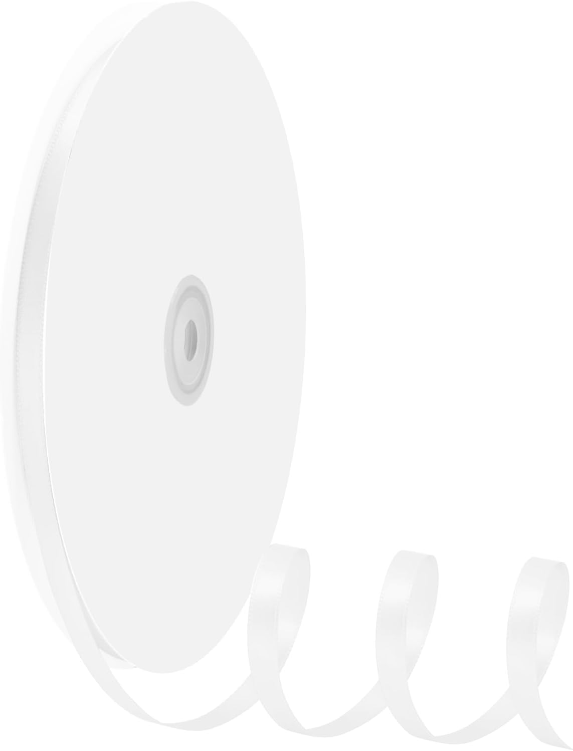 1/4" X 100 Yards Off White Satin Thin Ribbon Solid Color Double Faced Ribbons Perfect for Crafts Wedding Decor Bow Making Arts Sewing and More