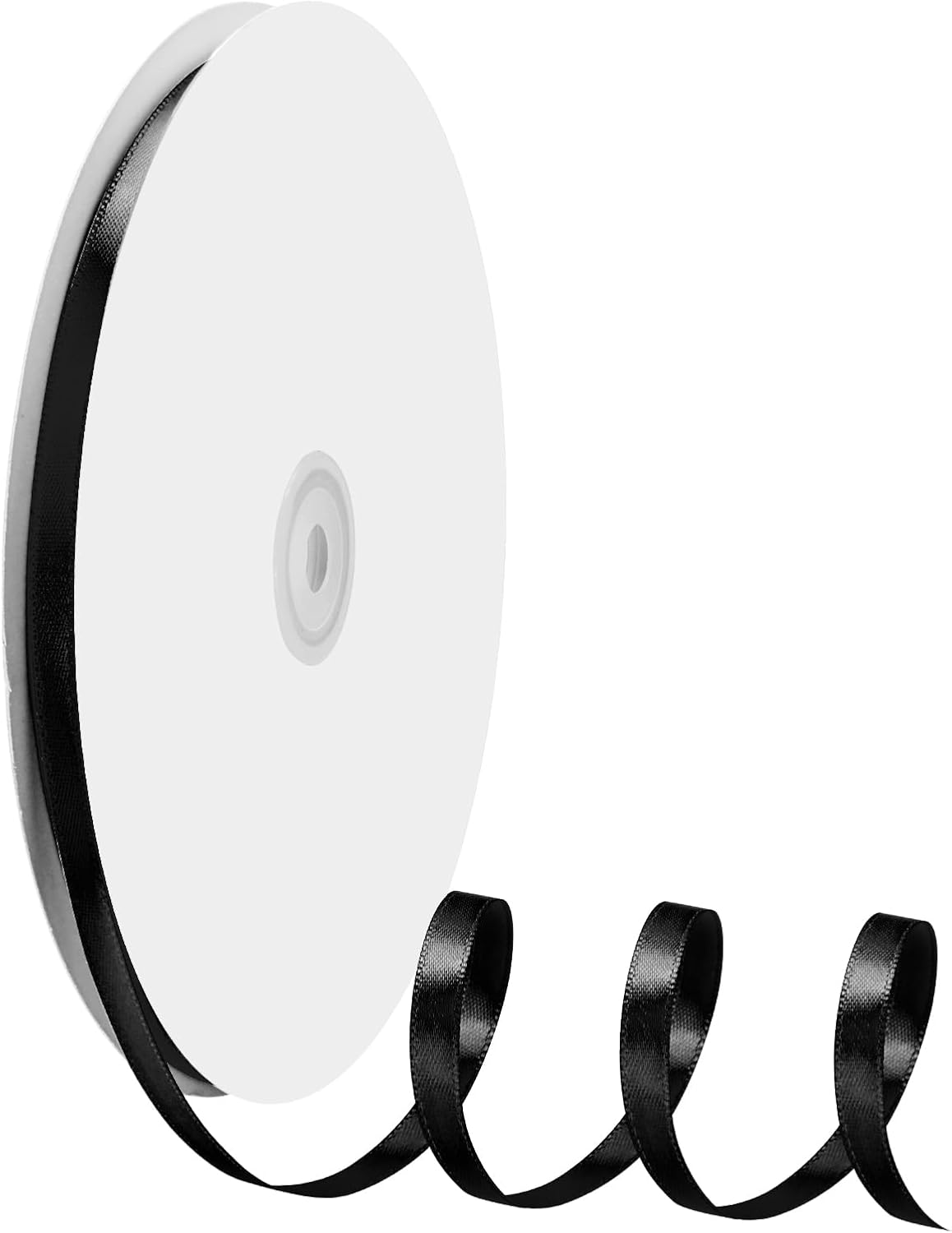 1/4" X 100 Yards Black Satin Thin Ribbon Solid Color Double Faced Ribbons Perfect for Crafts Wedding Decor Bow Making Arts Sewing and More